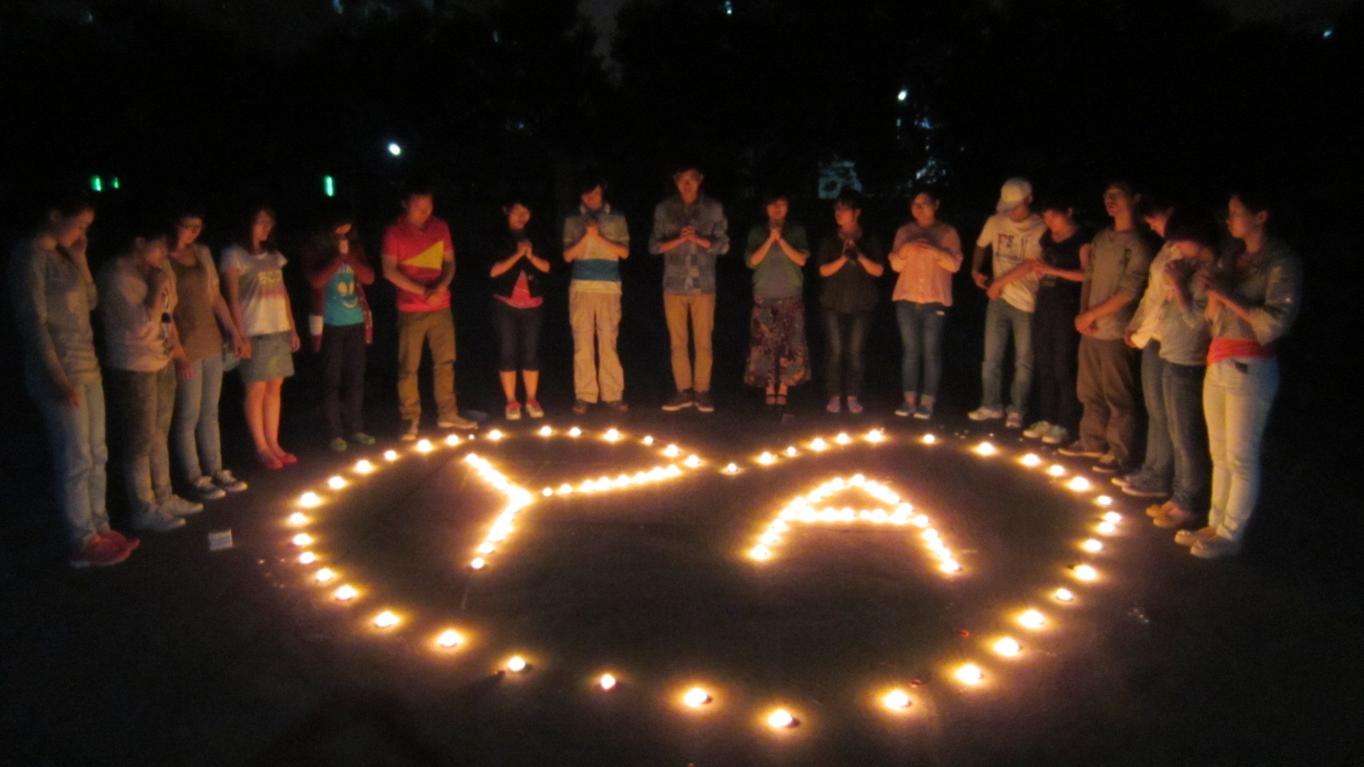 随着夜幕来临,广大研究生同学聚在一起,点燃烛光,摆出心系雅安字样,并为雅安逝去的同胞默默的祈福默哀三分钟。几十只孔明灯满载着同学们的梦想,祈福和祝福逐个飞向天空,在空中划出一道靓丽蓝图。