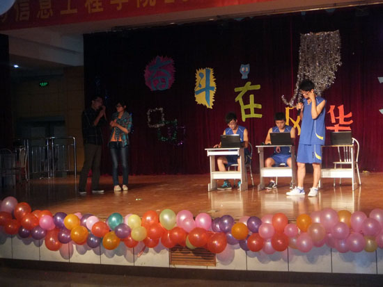 5月15日晚,医药信息工程学院在西区多功能厅举办了以“奋斗在风华正茂时”为主题的校园生活剧大赛,该院党总支书记王卫星、副院长杨松涛出席比赛。