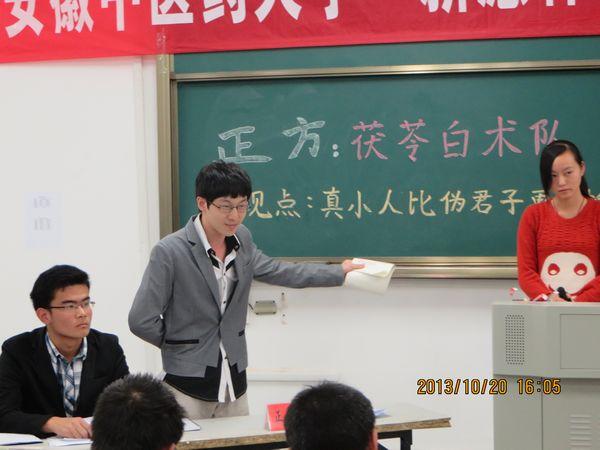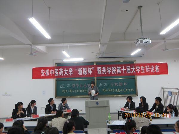 10月20日下午,由药学院学生会策划举办的第十届“新愿杯”大学生辩论赛在少荃湖校区点燃“战火”。 首场比赛在中药班和制药班之间进行,辩题为“真小人和伪君子谁更可怕”。双方辩手都条分缕析,论证广泛,有力陈述了己方的观点。辩手们充分发挥实力,旁征博引妙语连珠,彼此间争锋相对、互不退让,让比赛到达白热化阶段。最终,中药班获得了首场胜利。