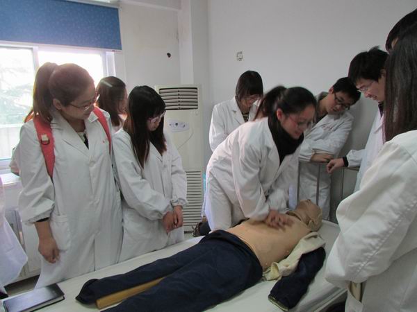 培训分为理论指导和技能培训两个部分,理论指导采用集中讲座的形式由一附院临床教学部主任李增林主讲,李增林主要从病例书写基本规范和临床问诊等方面对学生进行指导,并结合自己的临床和带教经验交代了在临床实习当中的一些注意事项。另外,该院2010级所有学生还采用小组教学的方式,参加了由一附院一线教师示范的体格检查、穿脱隔离衣、外科洗手和心肺复苏四项基本临床技能的培训。