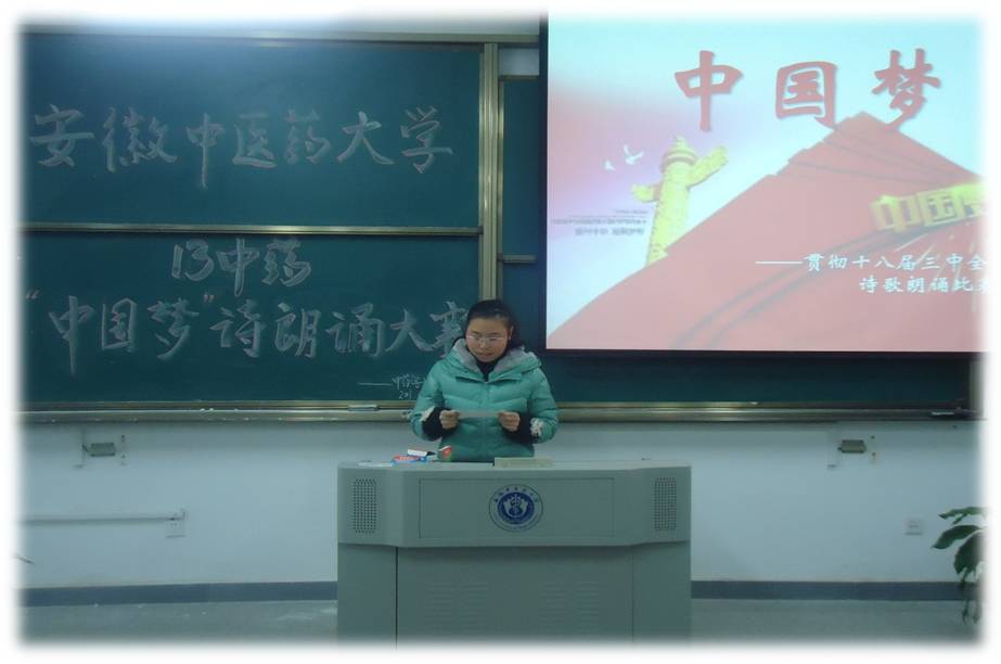 党的十八届三中全会胜利闭幕之后,药学院各班级团支部在团总支的统一指导下,纷纷举办了内容丰富、形式多样的主题团日活动。在经典诗歌朗诵会上,13药分专科班的同学们慷慨激昂,深情地抒发了爱国情、报国志。在红歌会上,13药分本科班的团干们还特别教唱了校歌《青春在飞扬》,让同学们在愉快的唱歌过程中充分感受了学校的文化底蕴,增强了身为安中人的自豪感。在13药剂(2)班团支部举办的“学习贯彻十八届三中全会精神”知识竞赛上,同学们更是拿出了辩论赛的架势,积极抢答,互不相让,答得精彩处引发了观众的阵阵掌声。此外,很多班级团支部还把团日活动和当下的时政热点紧密结合,和食堂合作开展了光盘行动,深入磨店社区进行防雾霾知识宣讲,去市区公园开展了党的十八届三中全会知识问卷调查,加深了对党的十八届三中全会精神的理解。