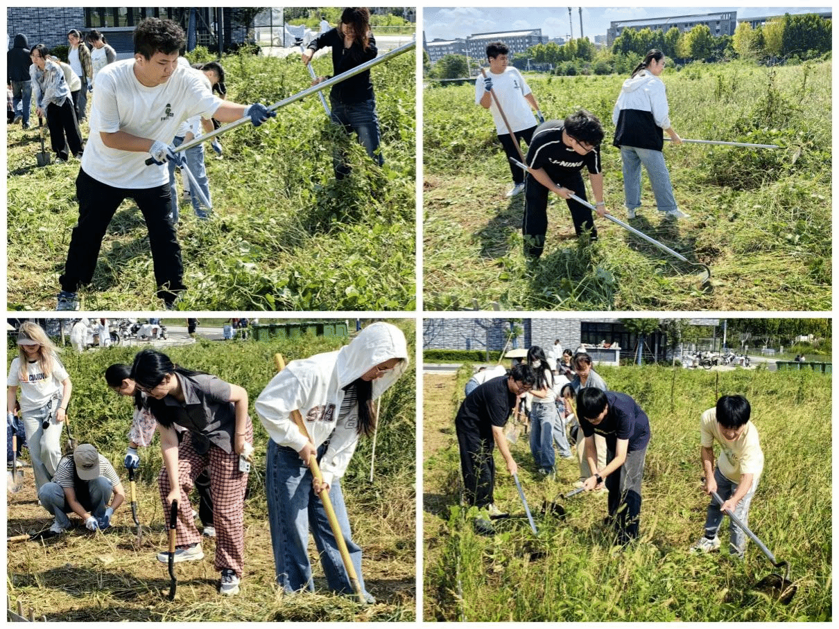 学院组织第一、第二党支部青年党员、入党积极分子、学生干部为南广场学院劳动教育实践基地除草。创造性地将劳动教育实践课程开设到田间地头,在劳动中弘扬精神,践行担当。