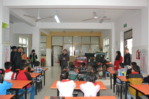 在志愿者到达小学时,孩子们刚好下课。在小学老师的组织下,孩子们站好队,捐赠仪式开始。学校老师对该院大学生志愿者此行表示了深切的感谢,并且希望孩子们可以利用好这些书和学习用品,从而取得更加优秀的成绩。该院刘竹青老师也做出讲话,表示以后会努力建设长期有效的帮扶机制,给孩子们持久的关注与关爱。这次志愿者们为老师和孩子们带来了许多图书以及学习用品,这些物品都是以捐献的形式得到再转赠给肥东县店埠学区中心学校。
