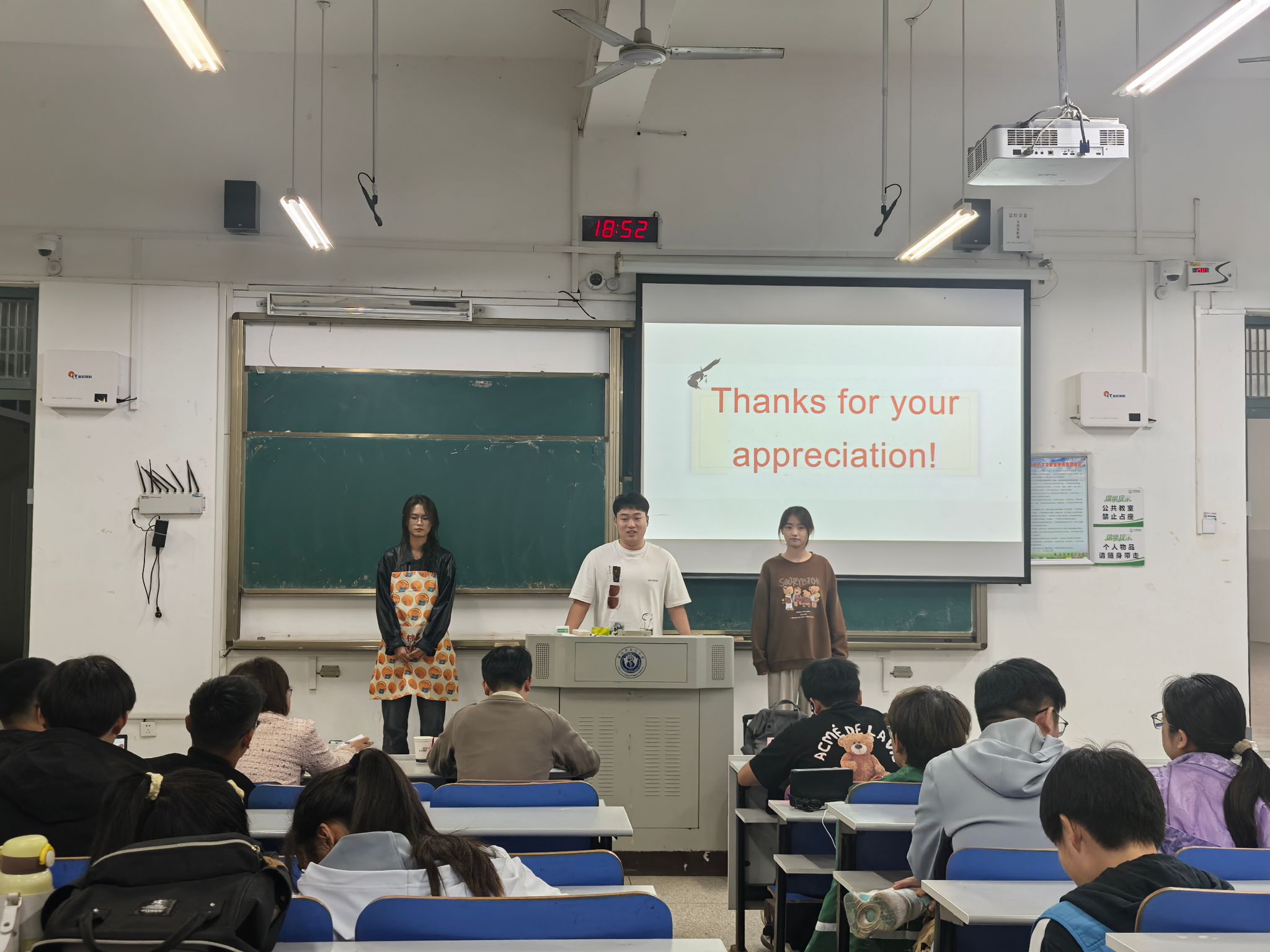 参赛选手以流利的口语、清晰的表达,展现了大学生良好的英语口语水平。经过两个半小时的激烈比拼之后,第六组颜若羽、汪欣语、王飞获得第一名,将代表学院参加校赛。