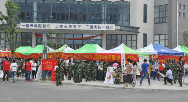 招新工作安排在9月21日至26日中午进行,各学生组织在少荃湖校区食堂门口广场前撑开一顶顶帐篷,拉开一条条横幅,展示出一张张精美的宣传海报。无不洋溢着青春气息,展示着各自的优势与特点。