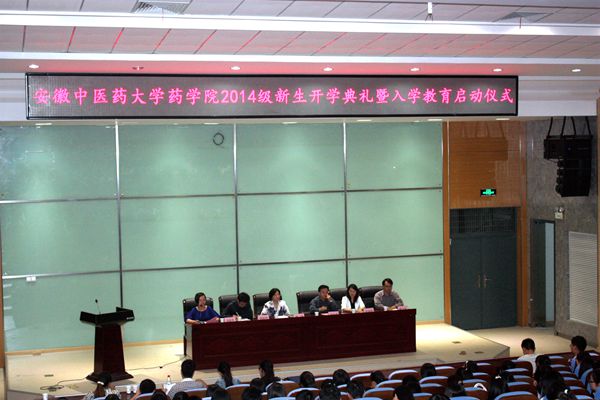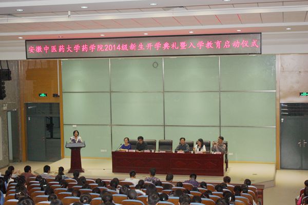 10月10日,药学院在少荃湖校区隆重举行2014级新生开学典礼暨入学教育启动仪式,该院党总支书记吴达武,院长戴敏,副院长桂双英、陈卫东,党总支副书记金晓琴,教师代表周建理以及各新生辅导员参会。典礼由金晓琴主持。