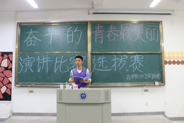在第一次全委会结束后,药学院学生会紧张有序的开展了各式文娱活动。从文化、体育、生活、交友等多方面出发,举办了以“奋斗的青春最美丽” 为主题的演讲比赛,“主舞台,持天下”药学院主持人大赛也吹响了青春号角。在这两场选拔性比赛中,同学们不仅体验了大学生活的乐趣,也找到了展现自我风采的舞台。