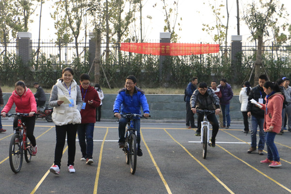 本次比赛的重点在于“慢”行,考验的是同学们的毅力及对自行车的操控技巧,参赛选手两人一组需要在指定赛道内行驶完规定的距离,同时在骑行过程中工作人员会向选手提问,每答对一题在总成绩上增加一秒,比赛过程中若自行车压线则会在成绩中扣除两秒,最终完成比赛用时最长者获胜。比赛在冬日温暖的阳光下有序的进行着,虽然冬日寒风刺骨,但现场的同学们都洋溢着阳光一般的笑容;虽然没有速度带来的激情,但同学们加油助威的声音依然不减分毫。最后宋弘奥和姚欢欢凭借他们完美的配合,优秀的自行车技巧获得了比赛的第一名。