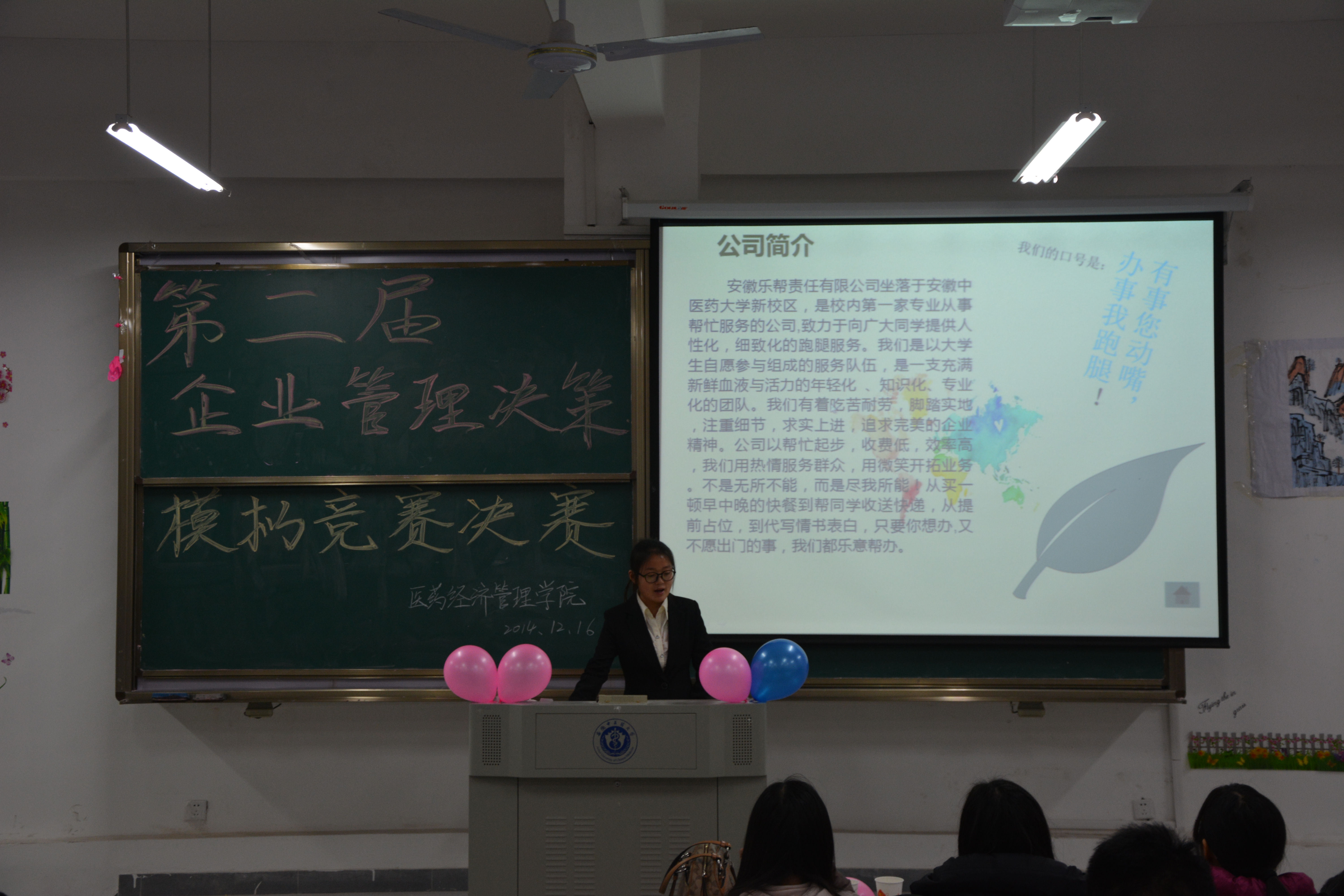 12月16日下午,医药经济管理学院第二届企业管理决策模拟大赛决赛如期举行。13和14级共十支队伍进入了最终决赛。
