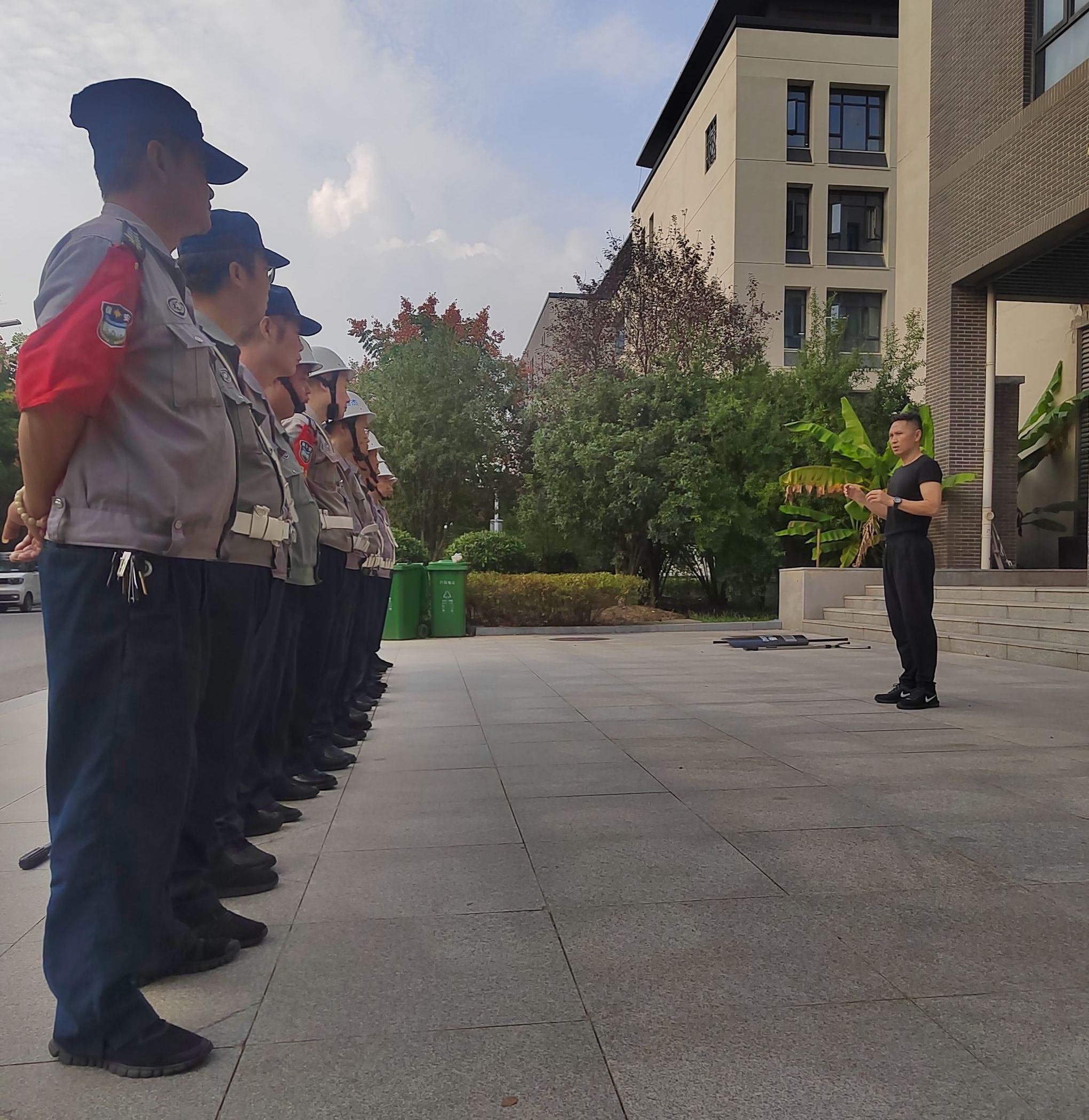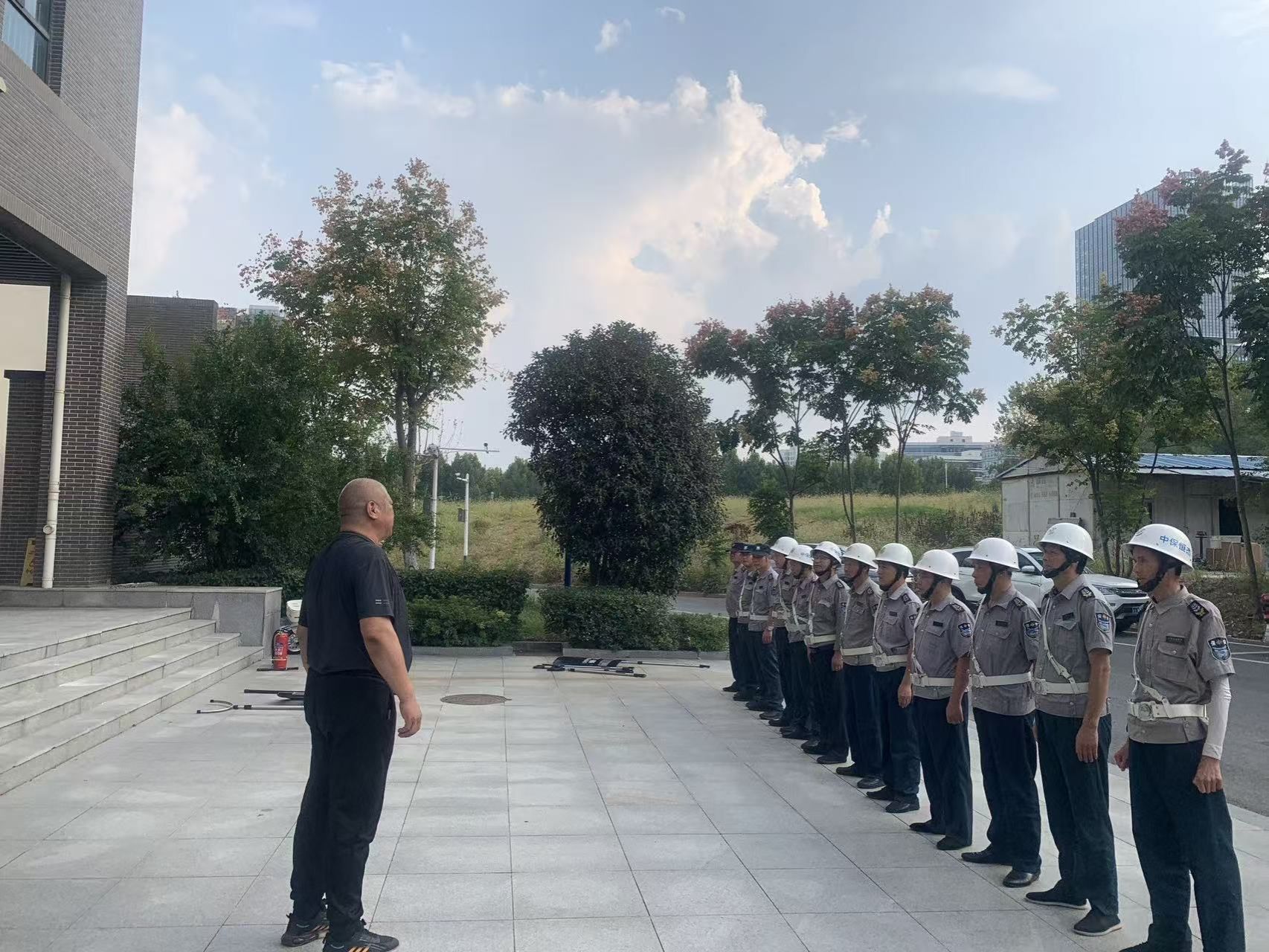 在反恐防暴培训中,谢汉民向安保人员详细介绍了各种防暴器械的名称、功能和使用方法。从防暴盾牌的正确持握姿势到警棍的挥击技巧,逐一进行示范,并进行了分组实操演练。