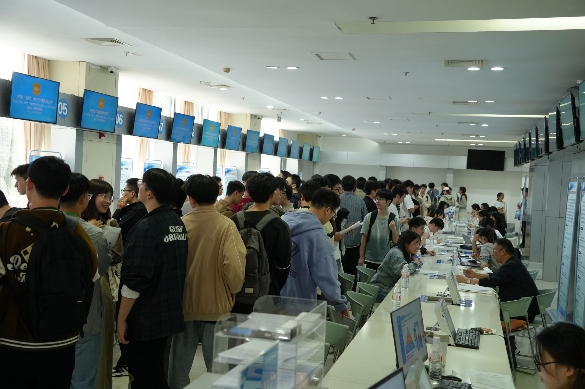 为推动2025届毕业生就业工作稳步进行,10月12日下午,安徽省人力资源和社会保障厅联合合肥综合性国家科学中心人工智能研究院等共同举办“拥抱AI·智汇未来——2024年安徽省AI专场招聘会”。医药信息工程学院作为本次招聘会的协办高校之一,积极响应国家关于促进高校毕业生就业和加强AI人才培养的号召,学院领导、就业秘书及毕业班辅导员全程护送2025届毕业生及部分大三年级学生参加本次招聘会。