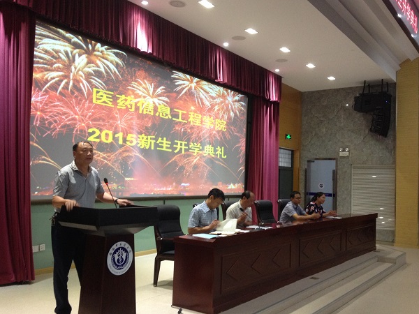 朗朗金秋,丹桂飘香。9月12日下午,医药信息工程学院2015级新生开学典礼在少荃湖校区隆重举行。院党总支书记王卫星、副院长杨松涛、副院长阚红星、副处级辅导员詹中华、教师代表和辅导员出席典礼,该院2015级436名全体新生参加了开学典礼,典礼由詹中华主持。
