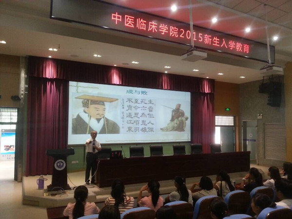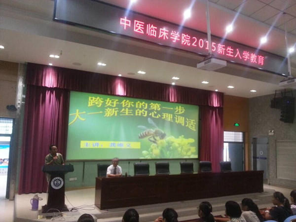9月13日下午,中医临床学院邀请二附院心理学专家龚维义教授在少荃湖校区为2015级新生进行了大学生心理健康专题讲座。学院党总支副书记况执本、学生工作秘书沈婷、2015级新生辅导员以及全体新生参加此次讲座。