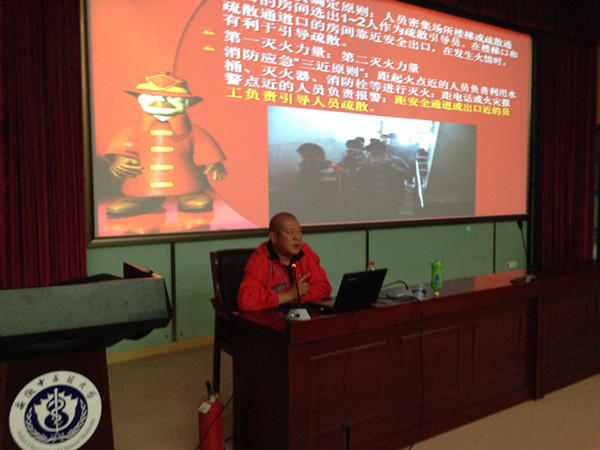 陈家胜给同学们强调了消防安全知识的重要性,介绍了消防知识的“两会两知”,通过剖析具体火灾和突发事件的实例,教育同学们如何在火灾中避免伤害和逃生,并为同学们播放了消防演习视频,现场演示了灭火器的正确使用方法。同时也介绍了地震预防和正确逃生的常识,他要求同学们不使用违章电器,遇到突发事件时不要慌乱,寻找有效逃生路径,服从疏散引导员的指挥。最后,陈家胜还针对诈骗、盗窃、人身安全等校园中可能出现的安全问题进行分析,让同学们在校园学习生活中加强自我保护、自我防范意识,真正认识到校园安全的重要性。