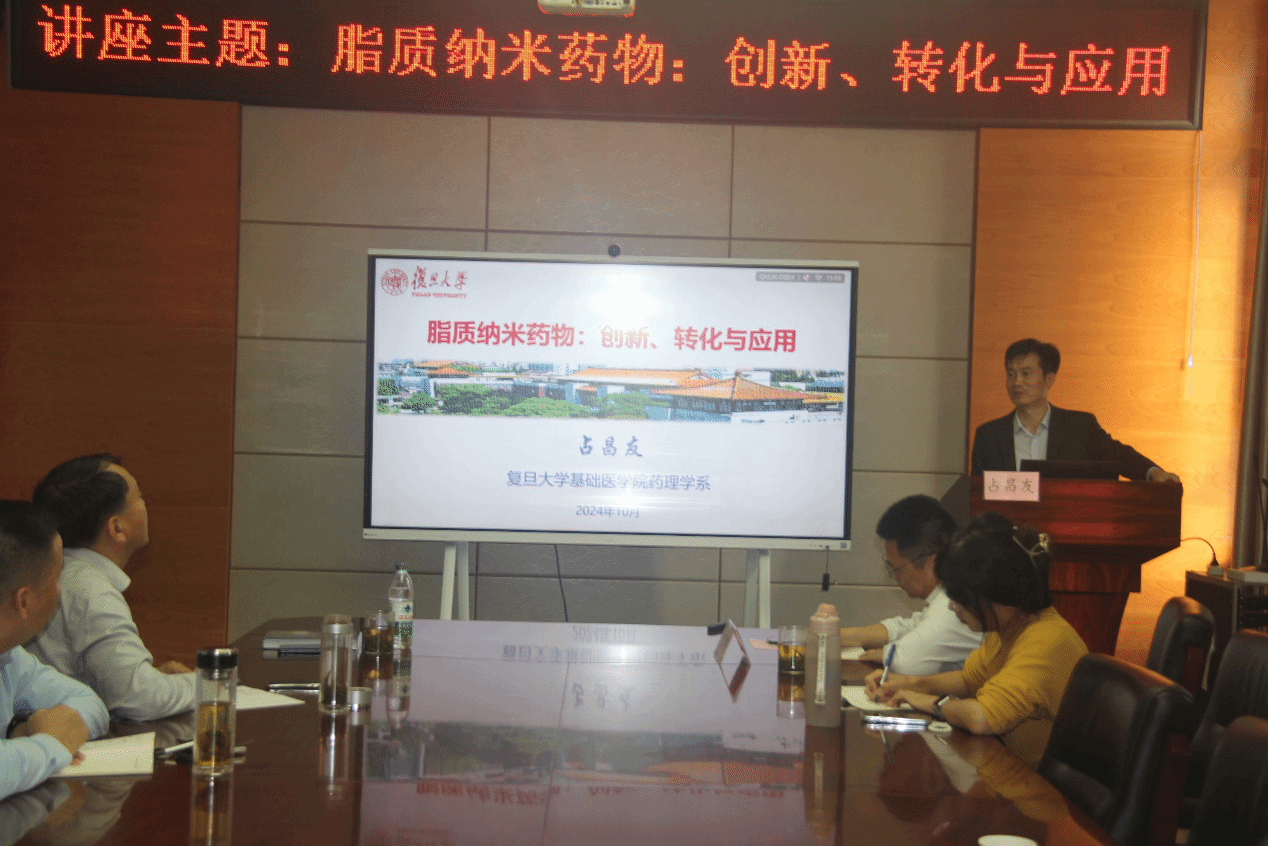 10月12日下午,复旦大学基础医学院药理学系占昌友教授应邀到我校药学院作主题为“脂质纳米药物:创新、转化与应用”的学术报告。本次报告由安徽省中医药科学院药物制剂研究所主办,安徽中医药大学科技处与药学院协办,药学院副院长尹登科主持报告会。