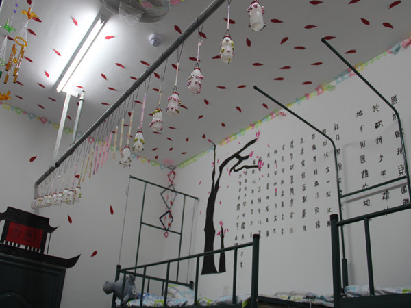 本次寝室设计大赛参赛面广,共有58个寝室参与。每一个寝室都表现得很积极,整洁的寝室、极富创意的设计以及精彩的解说让评委们连连称赞。5#921寝室用枫叶装饰墙面别具新意,并且匠心独具的将剪纸与书法结合,在墙面上贴出一则《少年中国说》,精致的窗花、秀丽的小篆更是古韵十足,完美地诠释了“我的中国风”设计主题。其他参赛寝室也表现不俗,有的还创意十足的用象棋、中药植株装扮寝室,充分展现了中华传统文化之美,极富中国意蕴。最终,5#921因其出色的创意设计荣获一等奖,6#401和5#1119分获二等奖,5#916、 5#1023、6#412获得了三等奖。