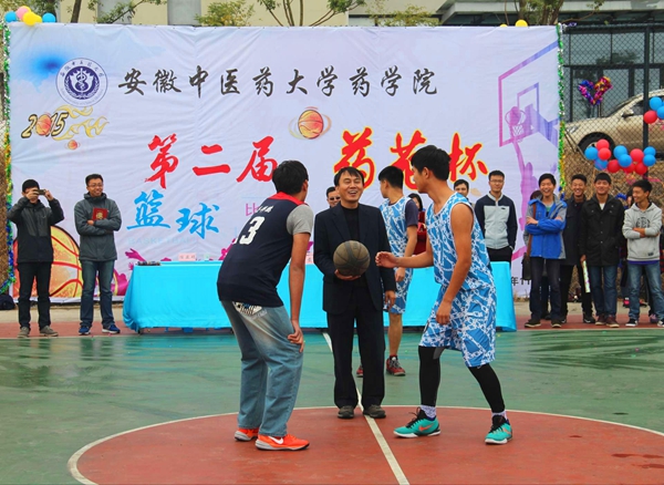 为了丰富大学生课余生活,增强团队凝聚力,展现当代大学生积极向上的精神面貌,药学院第二届"药苑杯"篮球赛开幕式于11月11日中午在新校区篮球场顺利举行,药学院院长戴敏、药学院党总支书记吴达武、药学院副院长陈卫东、药学院党总支副书记金晓琴以及各班级辅导员参加了此次开幕式。