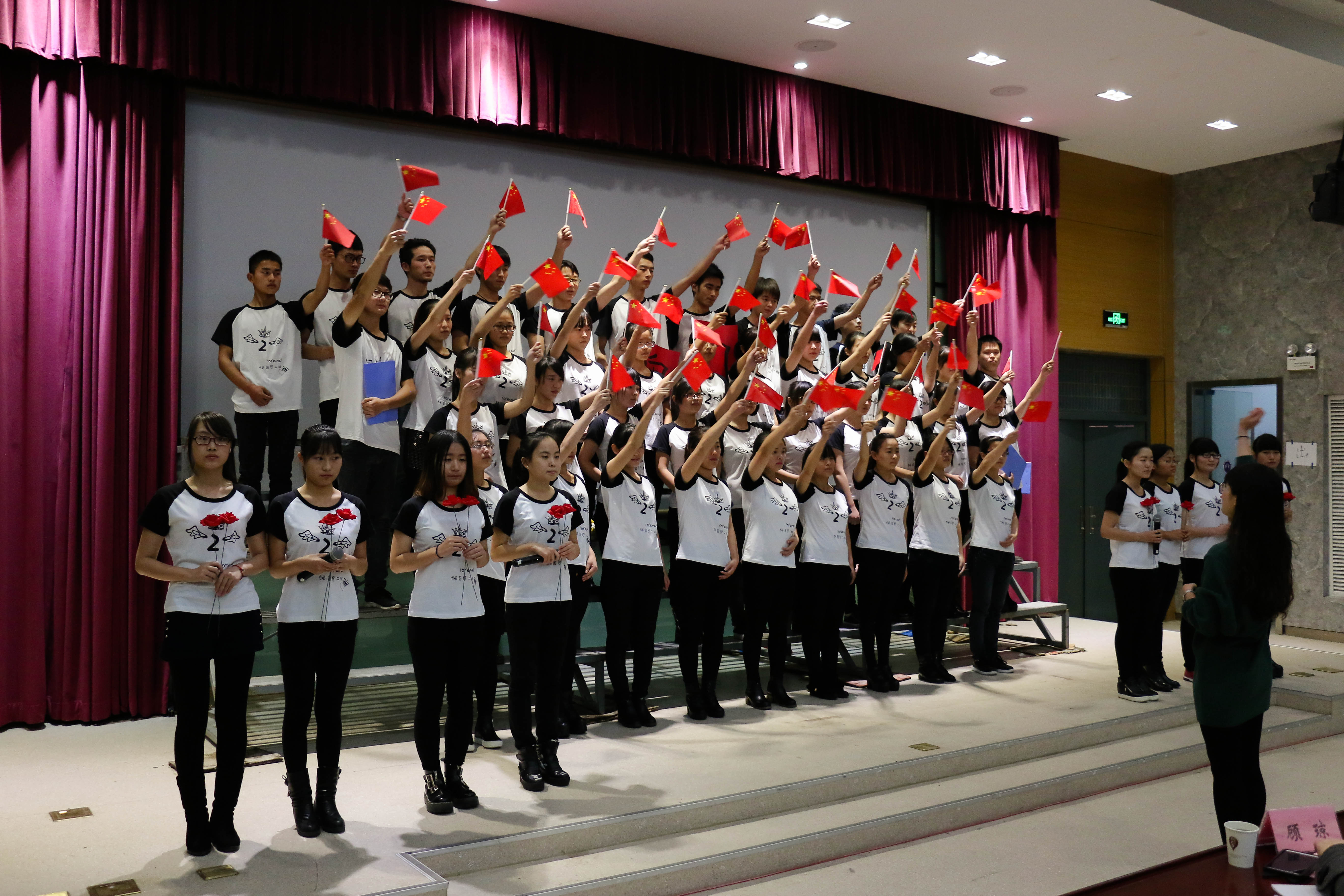 吴成海致开幕词。他带领全体同学简要回顾了120前的甲午战争的历史,70年前中国人英勇抗击日寇光辉事实,他希望,通过唱响红歌,唱出对革命先烈的缅怀;唱出炎黄子孙不屈的斗志;唱出中华儿女奋进的豪迈;牢记使命,牢记我们耻辱和悲伤的历史;牢记我们奋发图强只争朝夕的责任;牢记我们复兴民族振兴中华的伟大梦想。他号召,广大青年学生要在中国特色社会主义的旗帜下,唱响红歌酬壮志,牢记使命永向前。