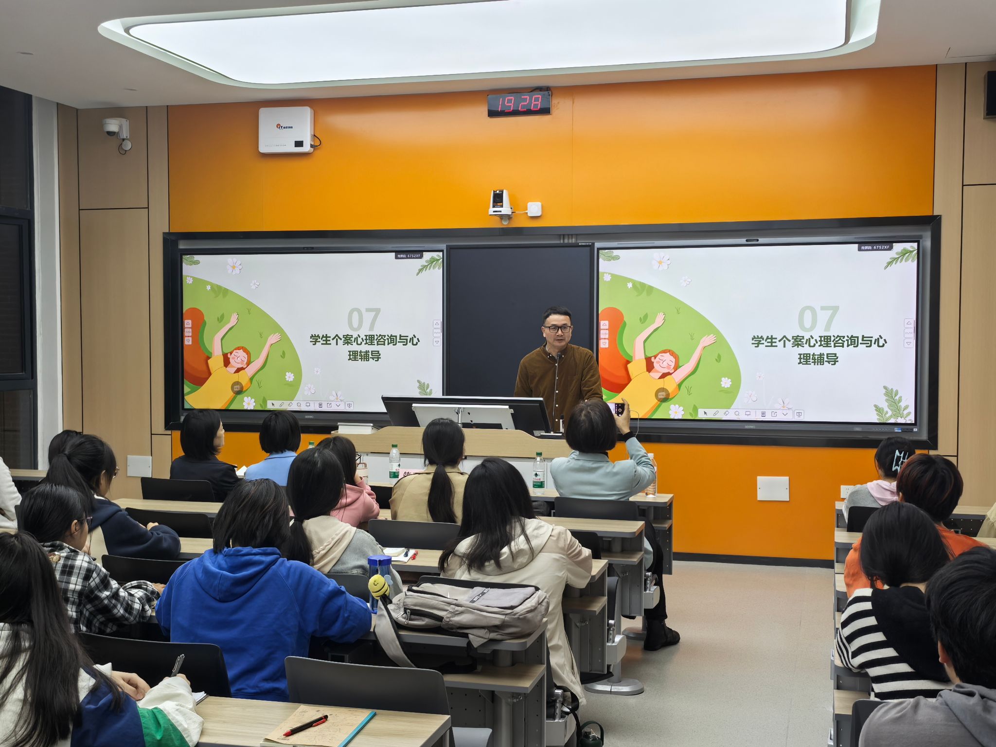 管以东重点分析了积极的情绪、积极的心态、积极的关系、积极的投入在心理健康教育工作中的重要意义,同时分享了自己选择从事中小学心理健康教育工作的心路历程。他指出,大学生在职业规划的过程中思考明确自己的“初心”、自己的人格特质非常重要,要找到符合自己价值观和个性特点的职业方向,与志同道合的人共同做自己喜欢的事,在助人和自助的过程中实现自己的人生价值。希望同学在步入青少年心理健康教育行业的过程中,勇于争取机会,不断提升自我。