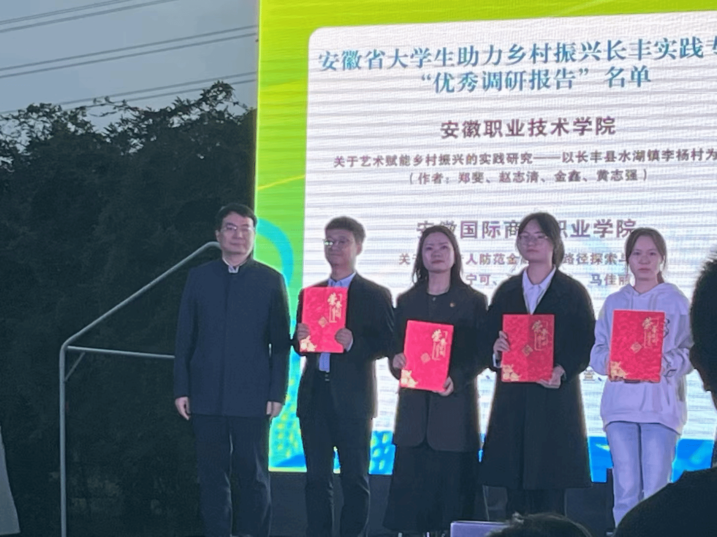 11月8日下午,安徽省大学生助力乡村振兴长丰实践专项活动成果分享交流在长丰县杨庙镇马郢村举办,团省委书记陈明生、长丰县委副书记江浩出席活动并讲话。学校作为结对共建单位参加了此次活动,第一临床医学院分团委副书记缪扬荣获安徽省大学生助力乡村振兴长丰实践专项“优秀个人”。