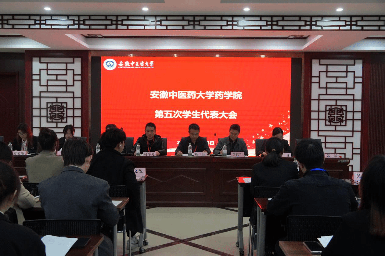 11月16日,安徽中医药大学药学院第五次学生代表大会在沁馨堂会议室隆重召开。亳州职业技术学院药学院党总支副书记鞠康,校团委素质拓展科科长杨争光,药学院党委委员、党政办主任黄伟军,药学院学生工作办公室主任方文韬,学院各部门负责人以及兄弟学院学生会代表和70名学生代表参加了本次会议。会议由药学院分团委兼职副书记郭媛主持。