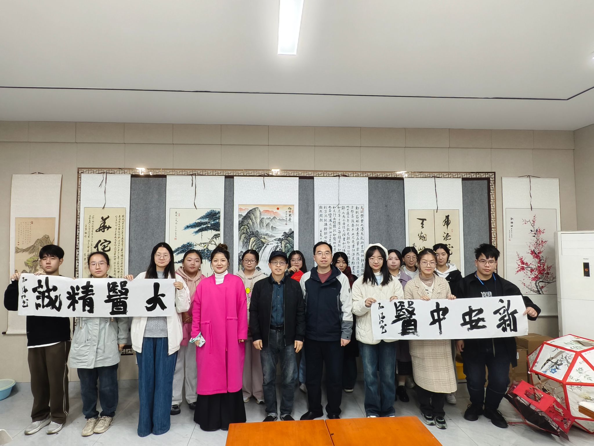书法和中医都是中国的国粹,都源自于中国的哲学思想,讲座过程中石海松现场点评俱乐部学生书法作品,并示范书写“大医精诚”寄语安中医学子。