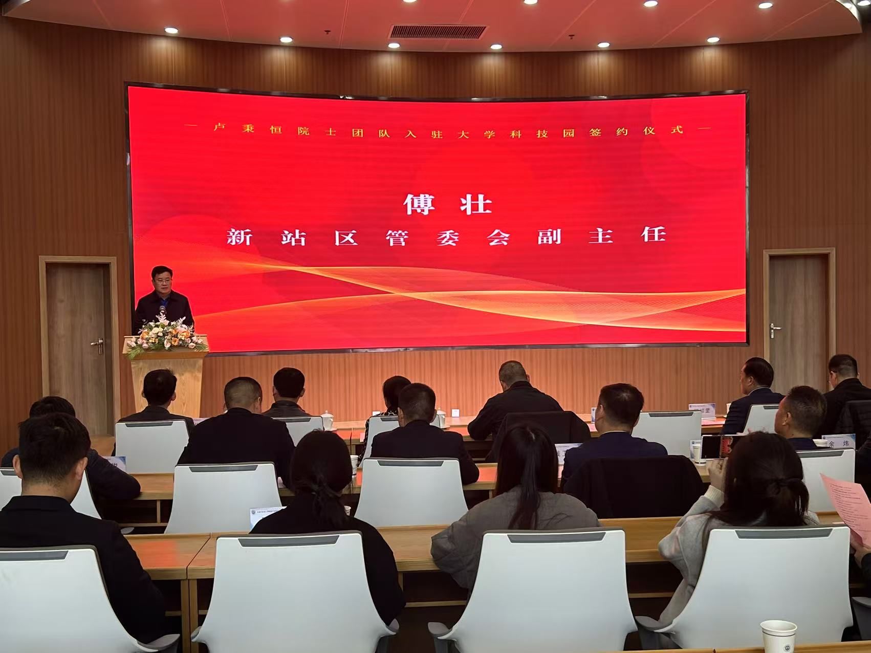 签约仪式在喜庆而热烈的氛围中拉开帷幕。傅壮在致辞中指出,欢迎卢秉恒院士团队入驻大学科技园和新站高新区,新站高新区是合肥市“中心引领、两翼齐飞”空间发展格局中的东部发展翼主引擎,近年来聚焦“芯屏器合”的产业发展方向,坚持创新驱动和生态优先,始终致力于科技创新和大健康产业升级。他强调,创新是引领发展的第一动力,而合作则是实现创新的重要途径,此次合作正是推动科技创新和产业升级的重要举措之一,希望双方能够秉持开放、包容、合作的精神,共筹“合作之策”,不断探索中医药与现代科技融合的新路径,打造中医药科技创新的新高地。