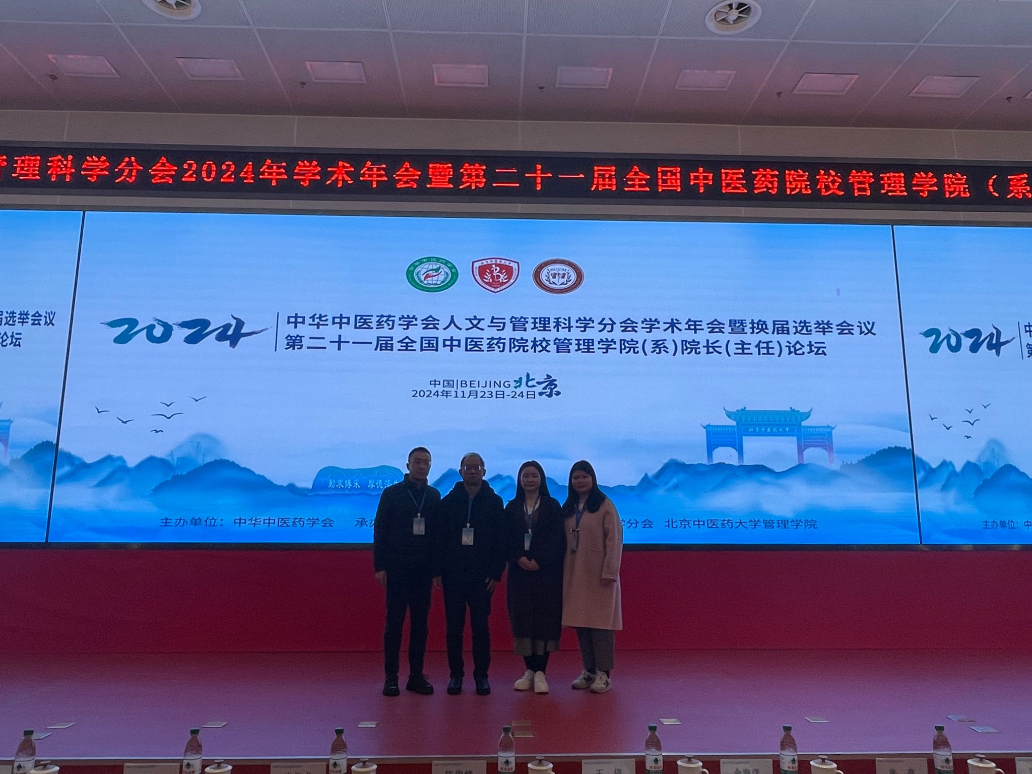 11月23-25日,由中华中医药学会主办,中华中医药学会人文与管理科学分会和北京中医药大学管理学院等共同承办的“中华中医药学会人文与管理科学分会2024年学术年会暨第二十一届全国中医药院校管理学院(系)院长(主任)论坛在北京中医药大学顺利召开。医药经济管理学院副院长陶群山、公共管理系主任徐金菊和教学办负责人参加此次会议。
