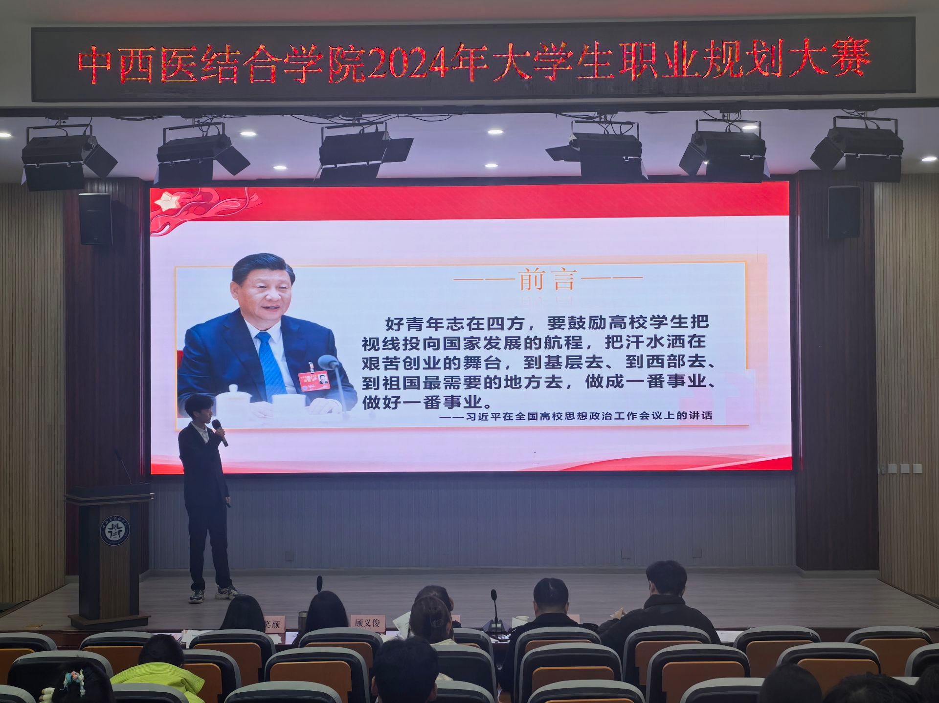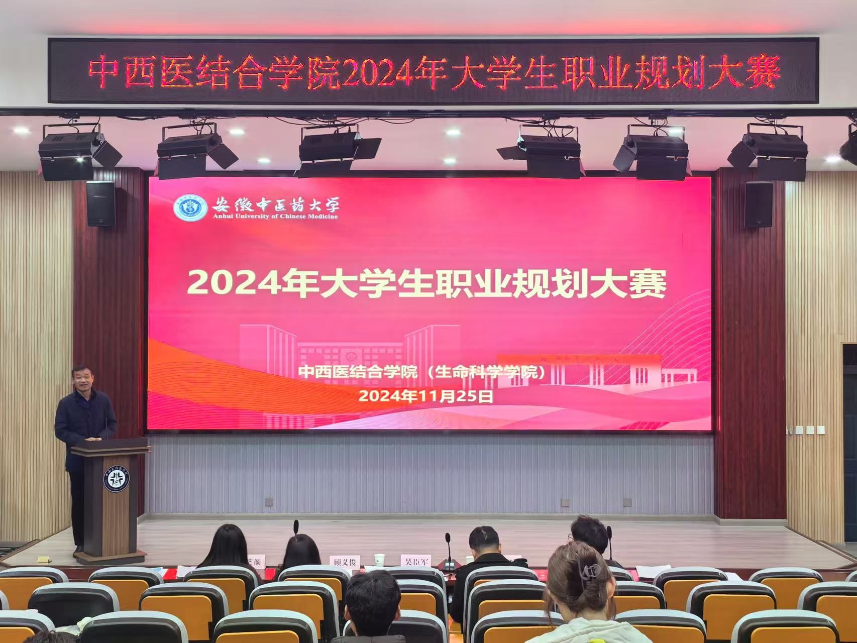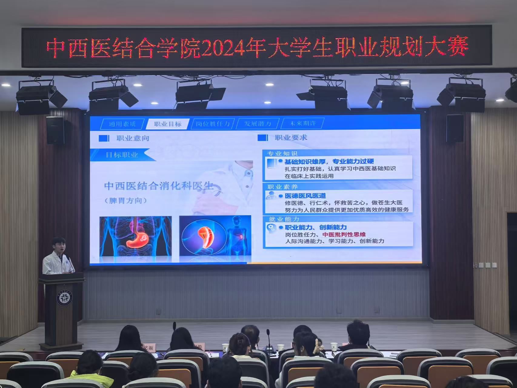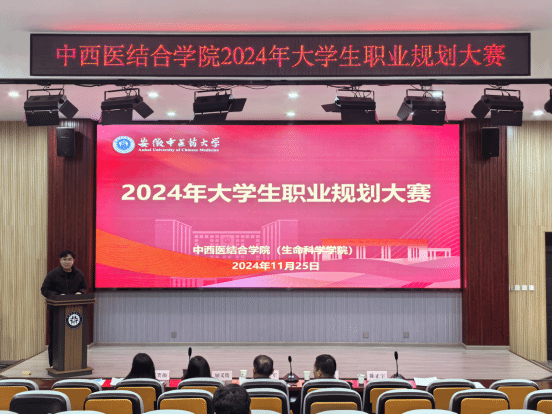 为引导学生树立正确的成长成才观和择业就业观,科学合理规划学业与职业,11月25日晚上,中西医结合学院在学院B254报告厅举办2024年大学生职业规划大赛,大赛邀请创新创业学院副院长(正处级)吴臣军、中西医结合学院党委副书记顾义俊、学生处就业信息科科长谢啸、全国首届大学生职业规划大赛国赛铜奖获得者张笑颜、安徽省赛金奖获得者陈正宇担任评委。学院各年级200余名学生现场观赛。
