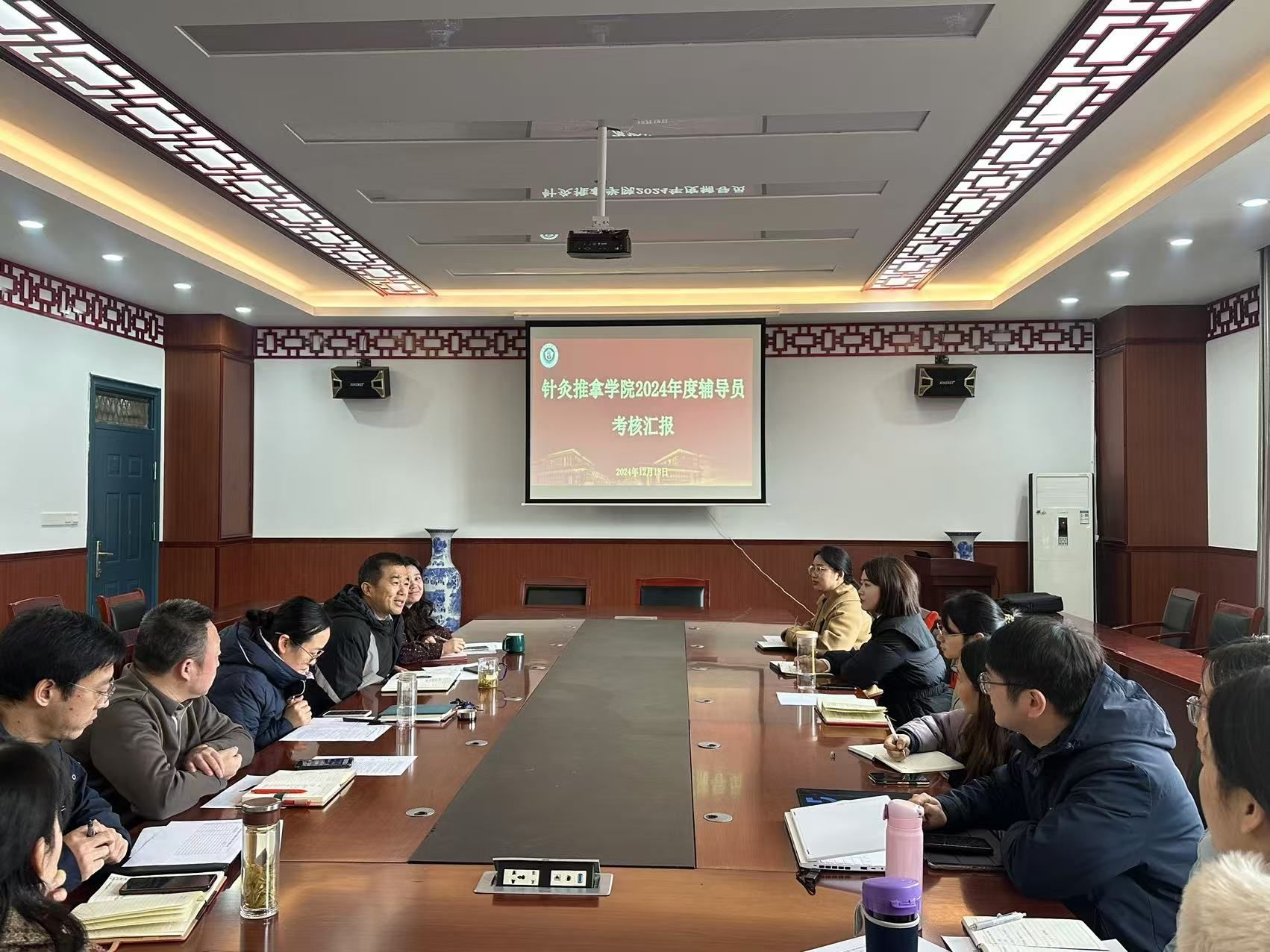 为进一步加强辅导员队伍建设,提高辅导员的综合素质和工作能力,客观全面地评价工作实绩和德才表现,发挥考核工作在辅导员队伍建设中的激励导向作用,12月18日,针灸推拿学院于至精楼A325会议室开展2024年度辅导员工作考核,学院党政领导班子、学院各系中心主任参加,学院全体专兼职辅导员参加考评。