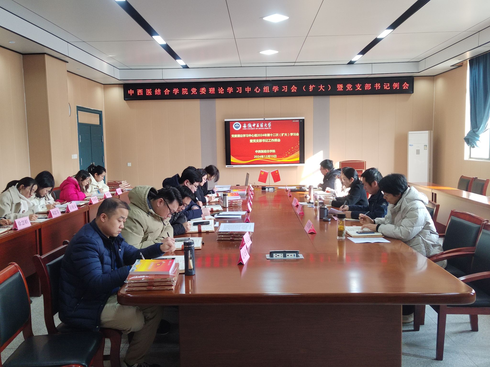 12月19日,中西医结合学院在B8楼216会议室举行党委理论学习中心组学习会暨党支部书记例会。会议由学院党委书记王红松主持,学院党委委员、各党支部书记参加。