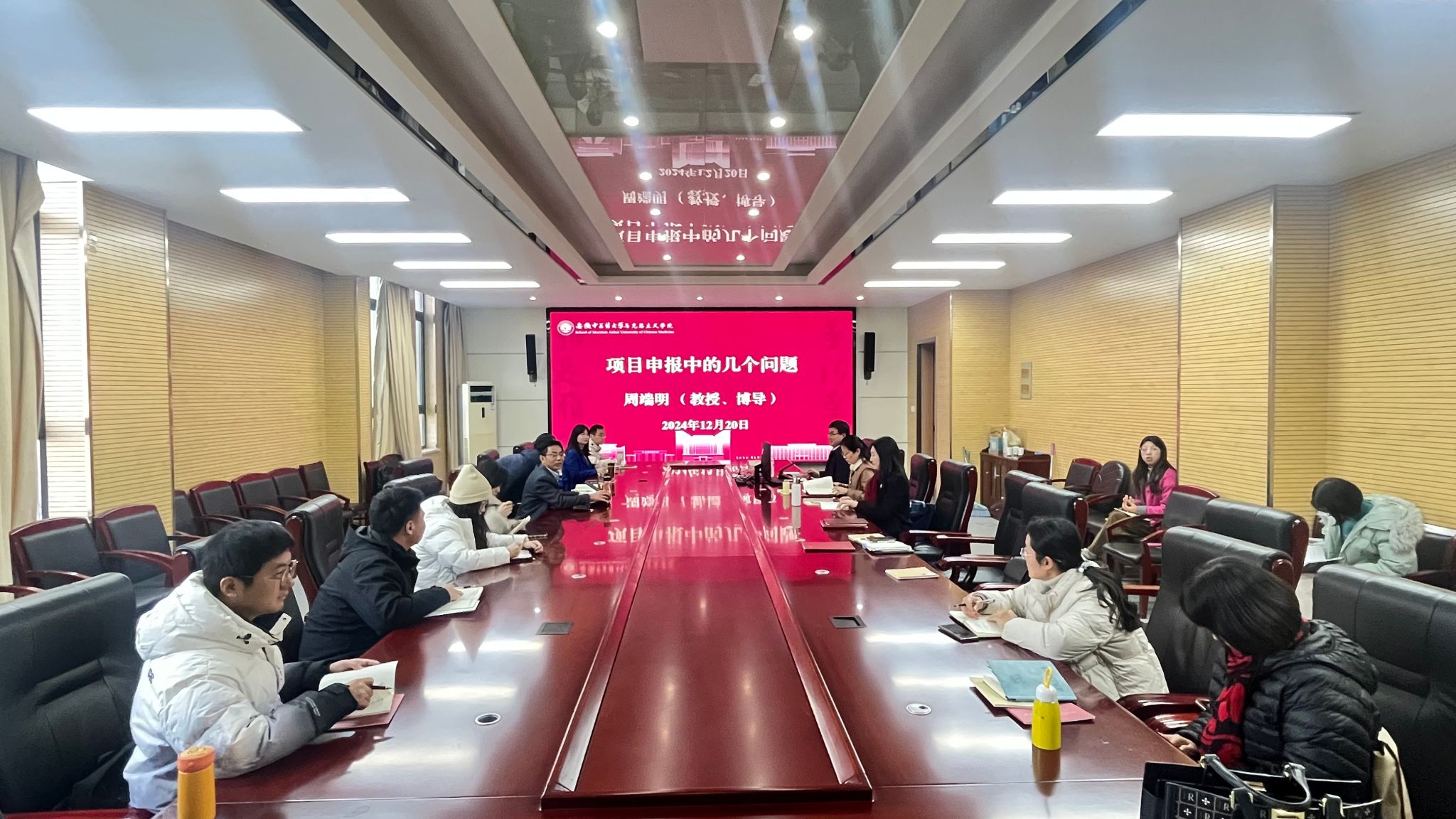 为提升教师国家级项目申报质量,增强社科研究综合实力,12月20日,马克思主义学院邀请合肥师范学院党委委员、副校长、博士生导师周端明教授作题为“项目申报中的几个问题”的专题讲座,学院全体教师及研究生参加了讲座,讲座由院长董玉节主持。