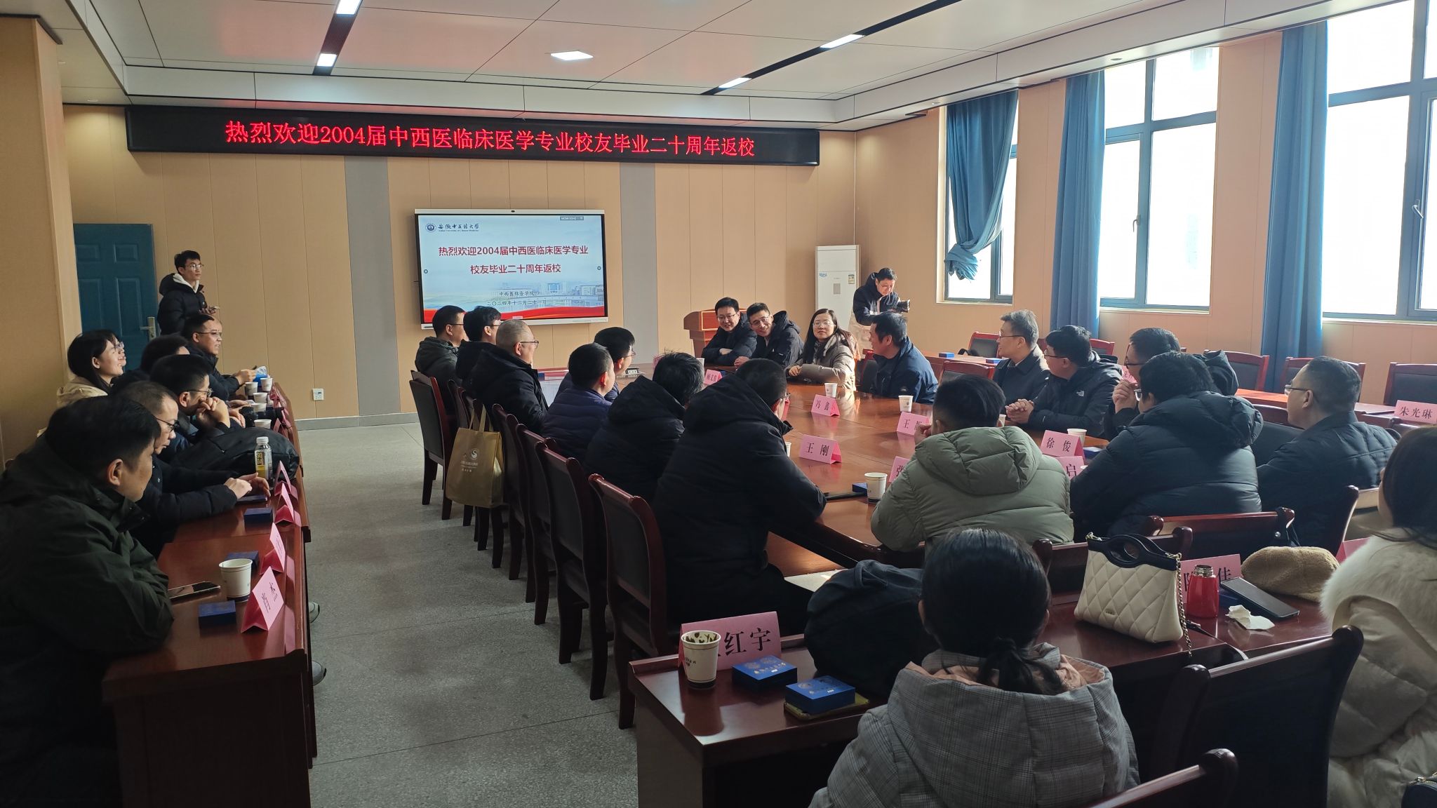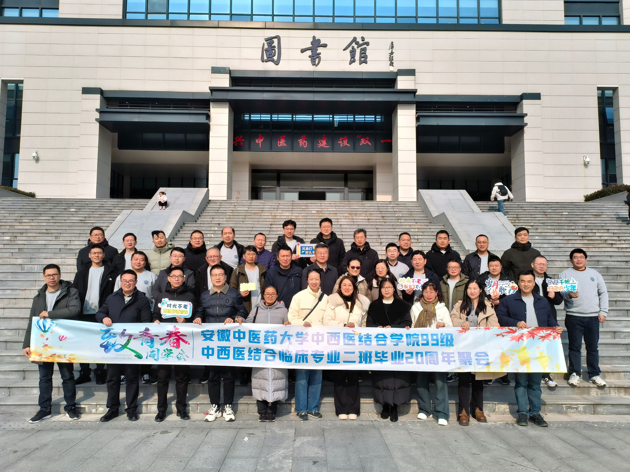 适值安徽中医药大学建校65周年之际,中西医结合学院中西医临床医学专业2004届校友重回母校,纪念毕业20周年。医药经济管理学院党委书记(2004届辅导员)冯鑫、中西医结合学院院长蔡标、党委副书记顾义俊、副院长王靓和来自全国各地的近50名校友共同参加校友返校庆祝活动。