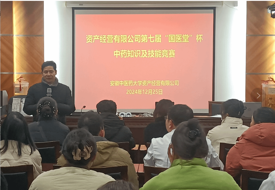 12月25日晚,安徽中医药大学资产经营有限公司第七届“国医堂”杯——中药知识及技能竞赛在国医堂举办。在公司分工会的组织下,来自国医堂三部、安中药业及智能煎药中心、中医门诊部有限公司的选手们齐聚一堂,展开了激烈且精彩的技艺切磋。公司党总支书记、董事长张亚辉,公司领导及各参赛单位负责人出席本次活动。