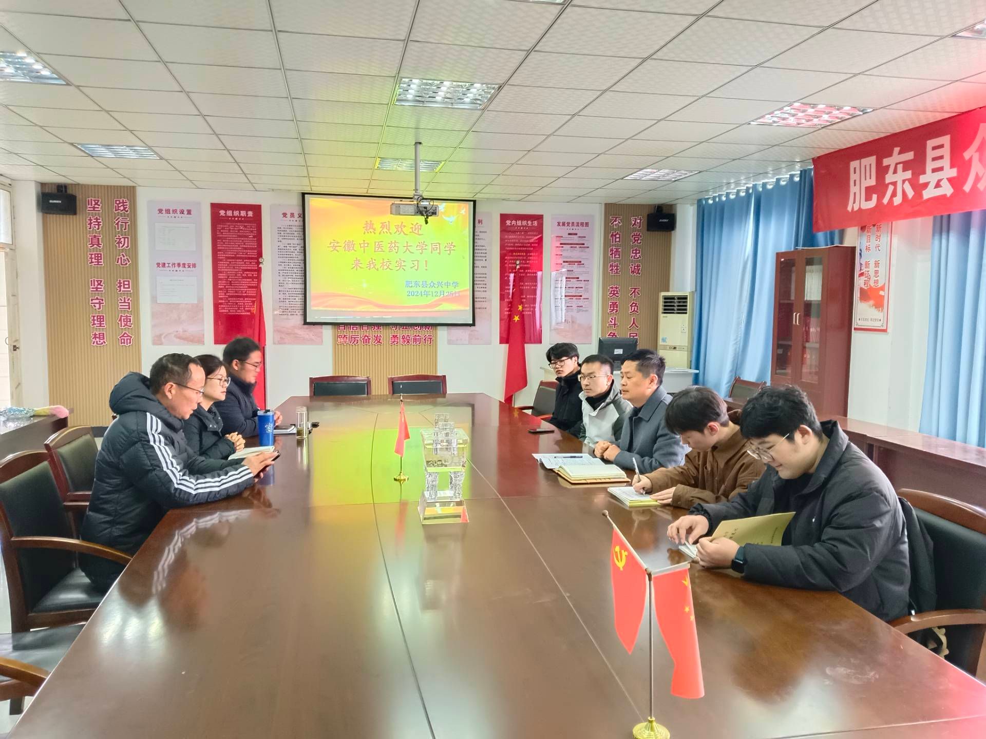 同时,送岗领导与实习单位进行座谈交流。金晓琴对合肥八中对我校实践教学工作的大力支持和为实习生提供的悉心保障表示感谢,她介绍了学校和学院的基本情况,重点介绍了应用心理学专业的人才培养情况和实践教学要求。金晓琴指出,实践实习是心理学人才培养过程中的重要环节,希望同学们珍惜机会、认真对待,在实习过程中多观察、多学习、多思考、多请教,通过实习学以致用,锻炼理论转化实践的能力,提升个人综合素养。