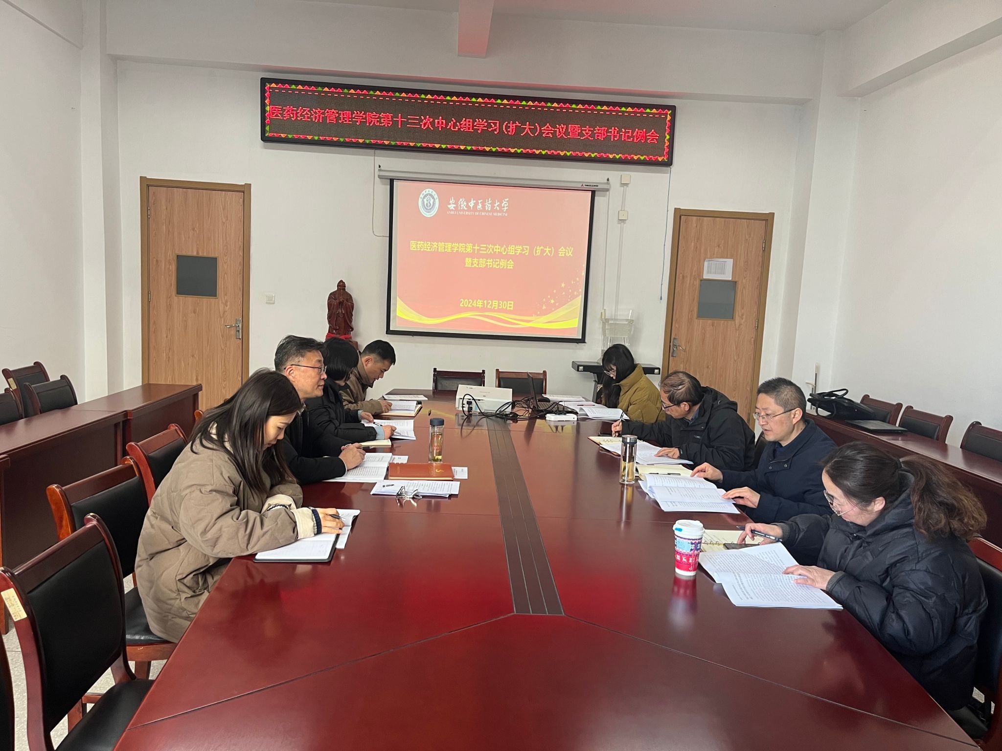 12月30日上午,医药经济管理学院召开2024年党委理论学习中心组第十三次(扩大)学习会暨支部书记例会。学院党政领导、党委委员、党支部书记参加会议。会议由学院党委书记冯鑫主持。
