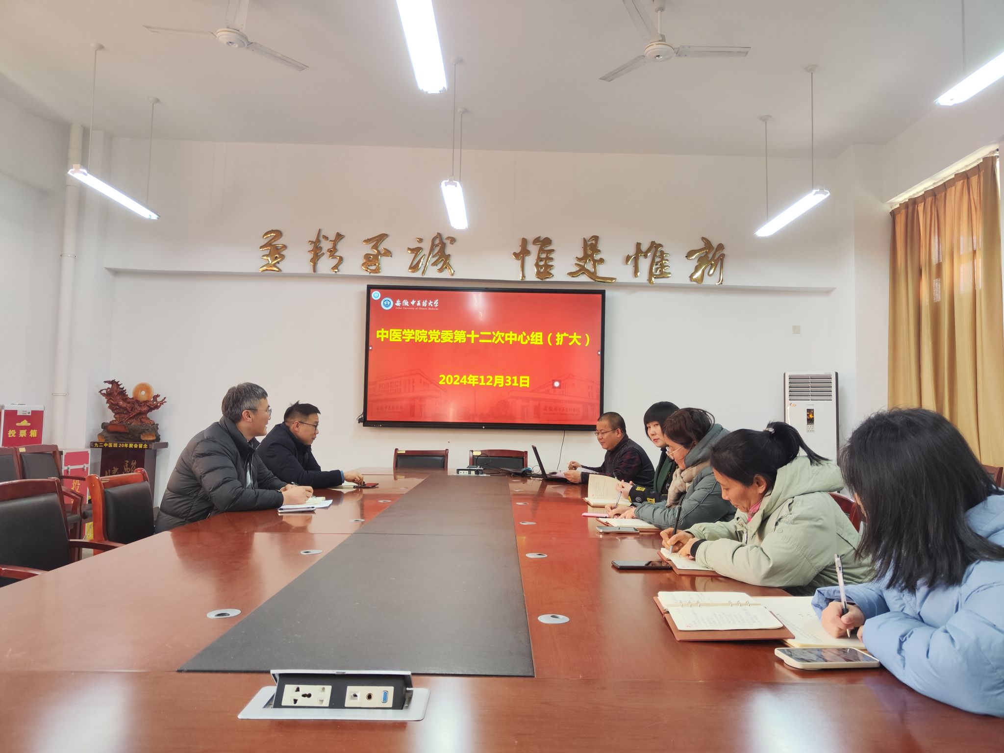 12月31日下午,中医学院党委召开2024年第十二次党委理论学习中心组(扩大)学习会议,学院党政领导、党委委员、党支部书记参加会议。会议由学院党委书记方晓主持。