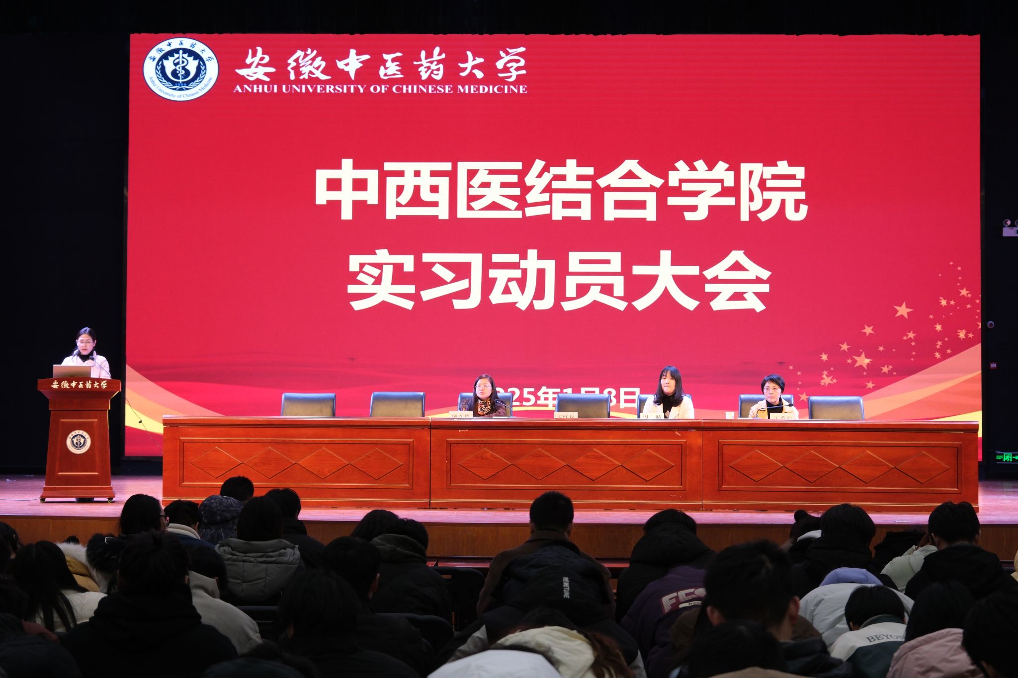 1月8下午,中西医结合学院在大学生活动中心召开2021级本科生实习动员大会。学校教务处副处长周晴,学院党政领导、实习秘书、辅导员和全体2021级中西医临床医学专业同学参加会议,会义由学院党委副书记顾义俊主持。
