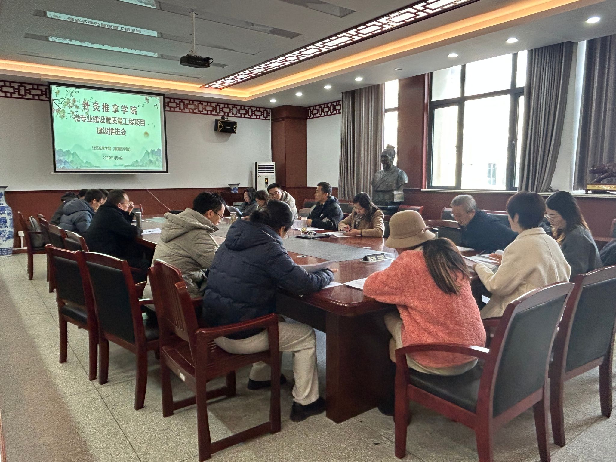 为督促学院微专业和在研质量工程项目建设,1月8日下午,针灸推拿学院组织开展了微专业建设和质量工程项目建设推进会,学院领导班子、学院教学督导、系主任、系副主任、教研室主任,以及各系秘书参会,会议由学院教学副院长刘自兵主持。