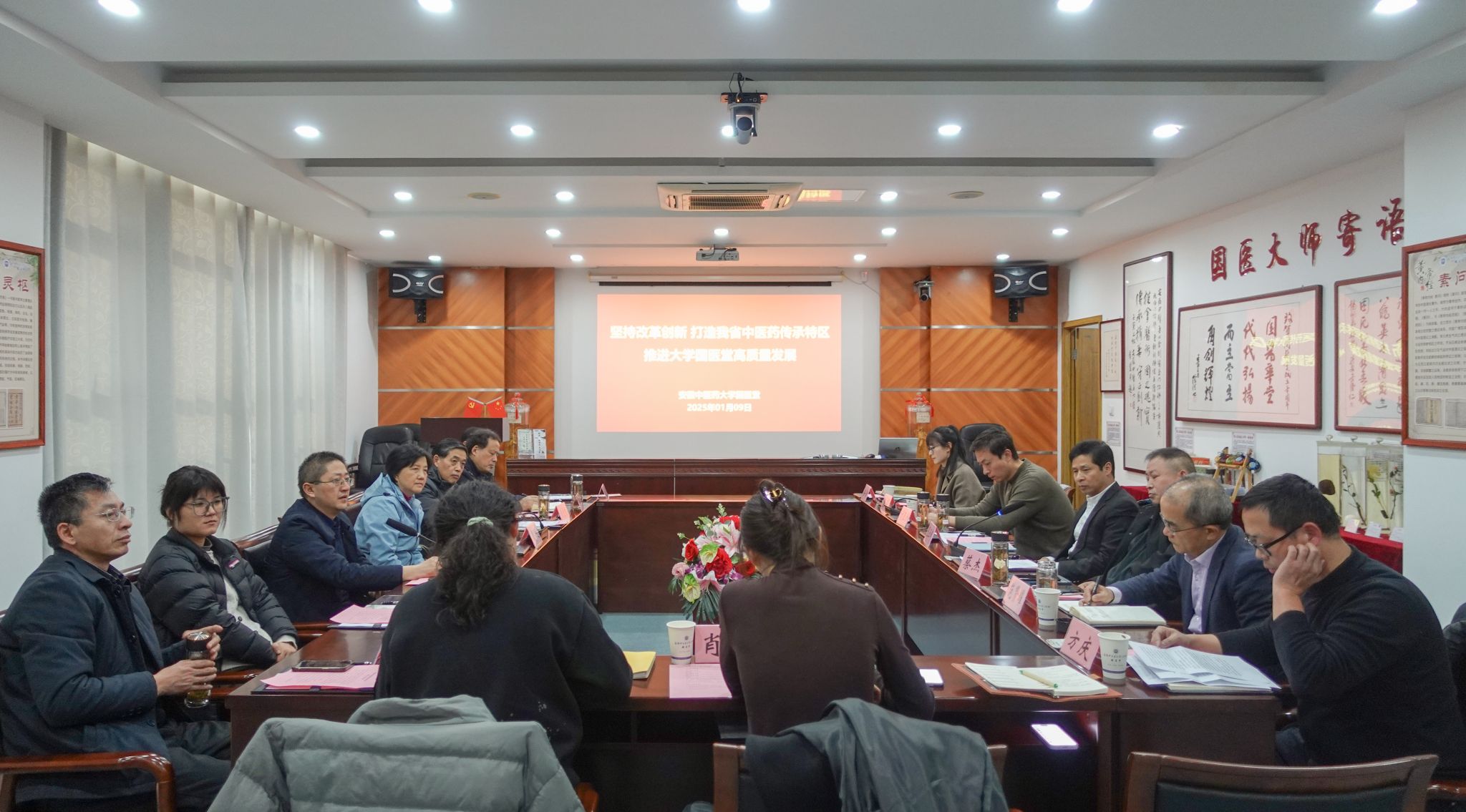 1月9日下午,学校党委统战部组织我校省级以上人大代表、省政协委员和省政府参事等一行8人赴国医堂,围绕“坚持改革创新 打造我省中医药传承特区 推进大学国医堂高质量发展”这一主题开展调研座谈。资产公司主要领导、相关部门及国医堂负责人参加。本次会议由资产公司党总支书记、董事长张亚辉主持。