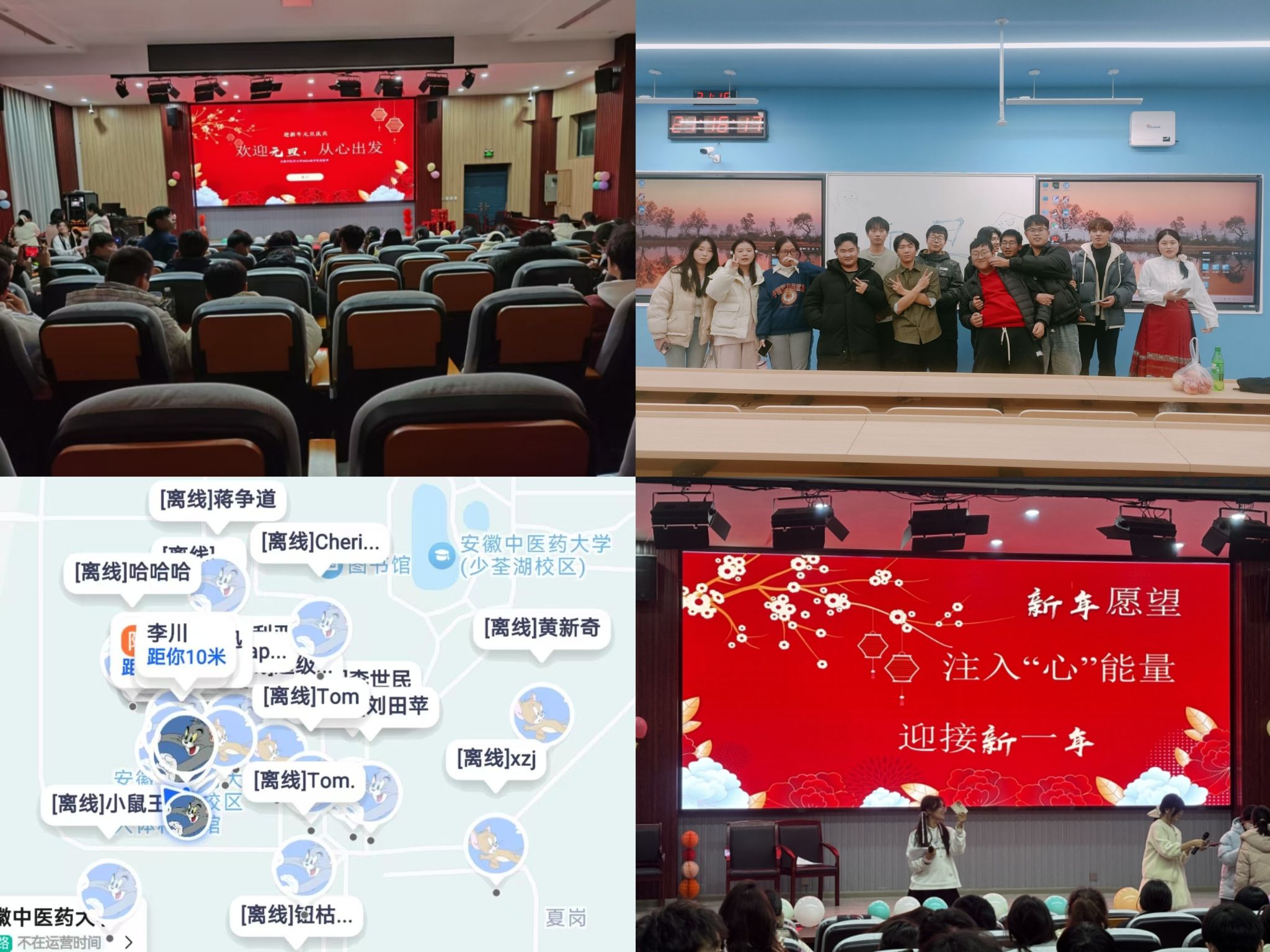 此次心理主题系列活动包括“猫和老鼠”素质拓展活动、迎新年联谊会、“时光明信片”等。“猫和老鼠”素质拓展活动通过游戏的方式,同学们扮演猫和老鼠的角色,在追逐、躲避中利用高德地图判断伙伴的位置,发挥了运动调节情绪、疏解压力的作用;各新生班级以“庆元旦,迎新年”为主题,举办新春联谊活动,促进同学们深入了解元旦文化,共同展望新的一年;“时光明信片”活动中,同学们纷纷写下新春寄语,表达对自己的期望或对他人的祝福,大胆抒发内心的情感。