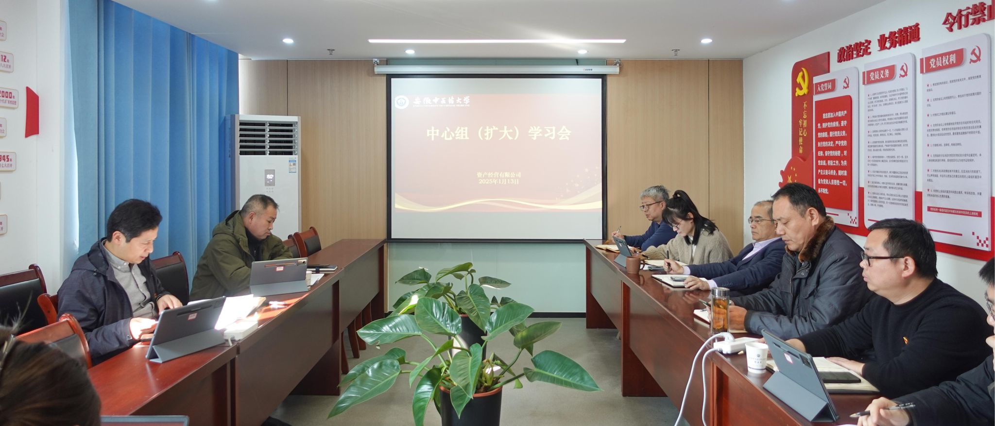 1月13日下午,资产经营有限公司在青阳路综合1号楼三楼会议室召开2025年第1次党总支中心组(扩大)学习会。公司党总支委员、公司副总、工会主席参加了本次学习会。会议由资产公司党总支书记张亚辉主持。
