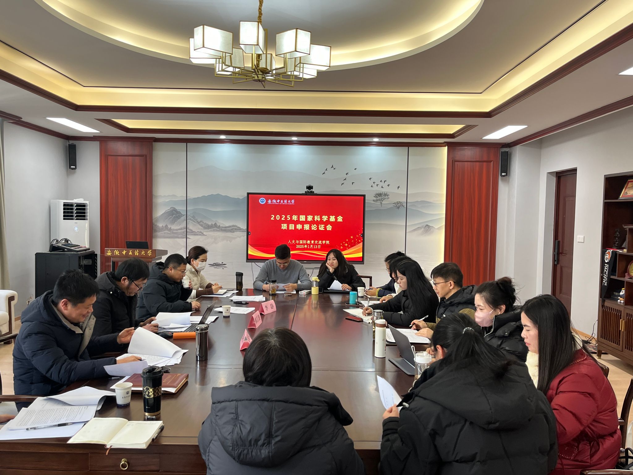 为提升教师科研项目申报水平,1月13日上午,人文与国际教育交流学院邀请安徽大学社科处处长李静教授与合肥工业大学外国语学院原院长韩江洪教授,为学院教师申报国家科学基金项目进行一对一指导,学院副院长张筱荣及全体申报人员参加会议,会议由张筱荣主持。