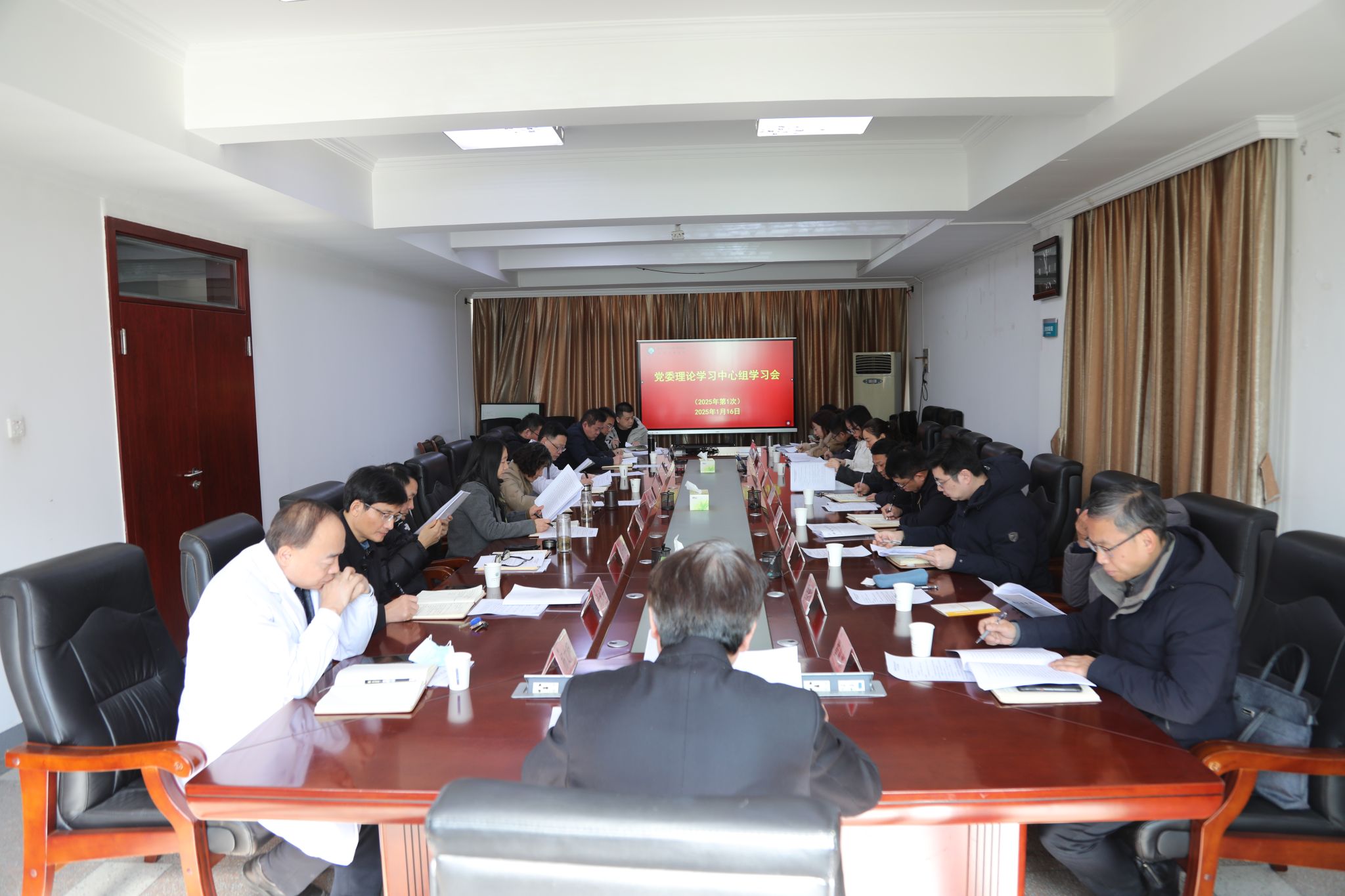 1月16日上午,第一临床医学院召开2025年党委理论学习中心组第一次学习会,校党委常委、副校长,医院党委书记聂久胜主持会议,医院党委理论学习中心组成员参加。