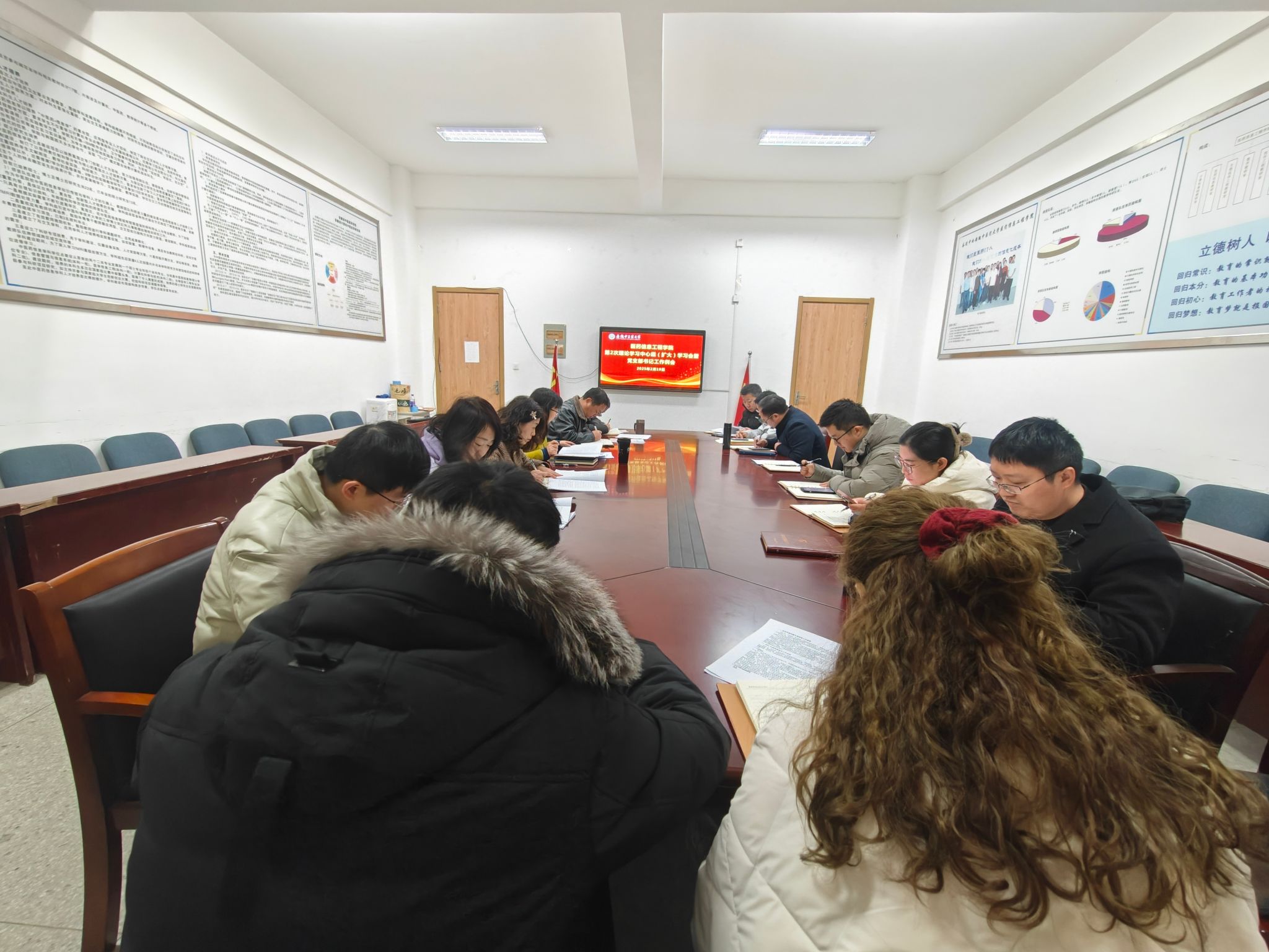 2月19日上午,医药信息工程学院召开党委理论学习中心组2025年第二次(扩大)学习会暨党支部书记工作例会,会议由学院党委书记高霞主持,学院党政领导、党委委员、各党支部书记参加会议。