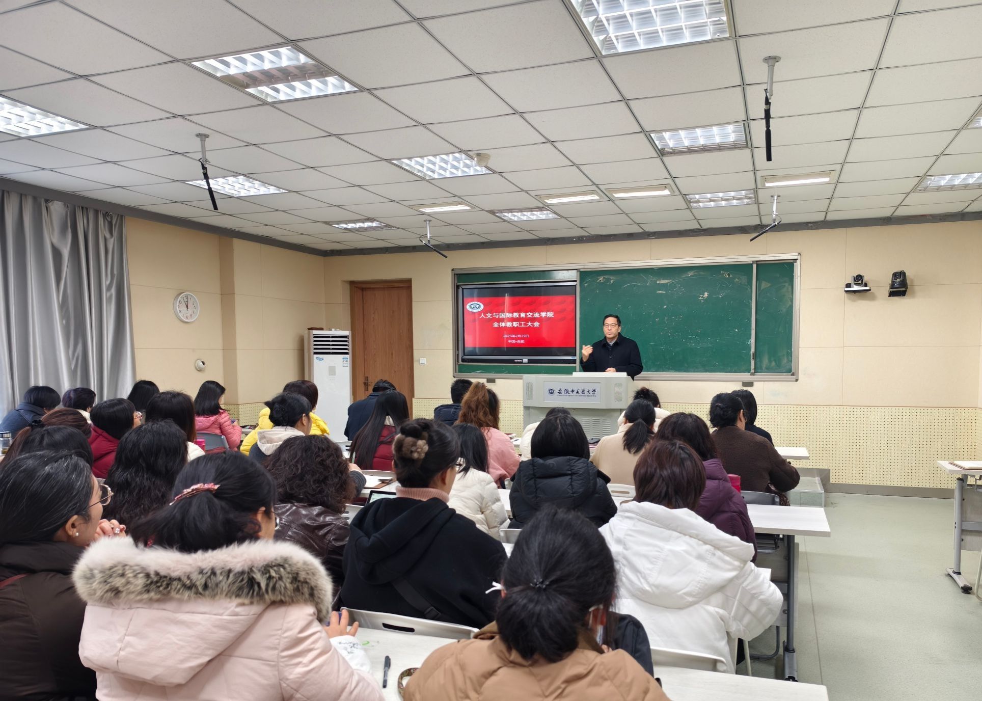 2月19日上午,人文与国际教育交流学院召开全体教职工大会。学院党政领导班子成员出席会议,全体教职工参加会议,会议由党总支书记金晓琴主持。