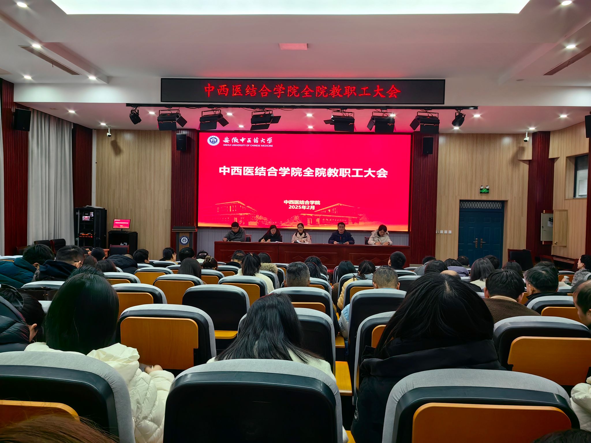 凝心聚力谋发展,踔厉奋发启新程。2月21日,中西医结合学院召开新学期第一次全院教职工大会,会议由学院党委书记王红松主持,全体教职工参加会议。