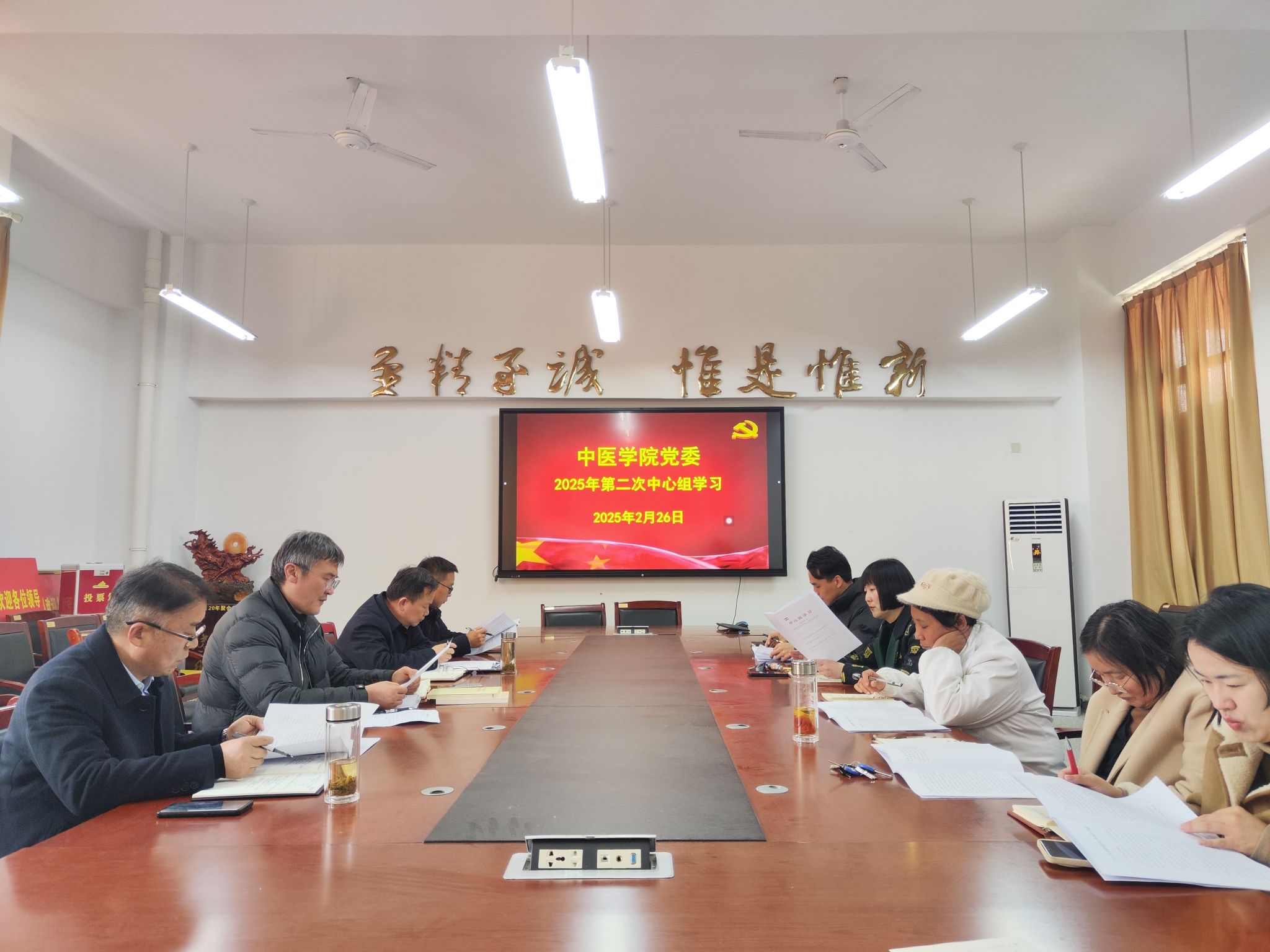2月26日下午,中医学院党委召开2025年第二次党委理论学习中心组学习会,学院党政领导、党委委员及支部书记参加,会议由学院党委书记方晓主持。