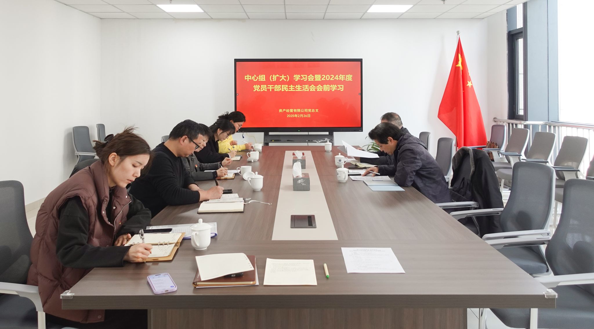 2月26日上午,资产经营有限公司党总支召开理论学习中心组2025年第二次学习会暨2024年度党员领导干部民主生活会会前专题学习会。资产经营有限公司党总支委员,党群工作部、综合办相关负责人参加学习会。会议由公司党总支书记、董事长张亚辉主持。