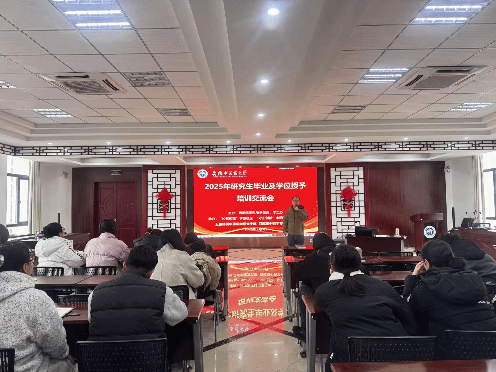 为切实做好2025年研究生毕业及学位授予工作,确保各项工作平稳有序进行,药学院3月5日通过线上线下相结合的方式举办了2025年研究生毕业及学位授予培训交流会。本次活动是我校学工部“杏林研苑”研究生思政品牌活动之一,由学工部主办,药学院学科与学位办、学工办具体承办。